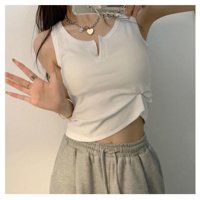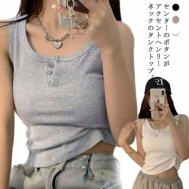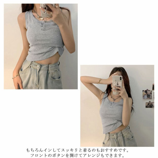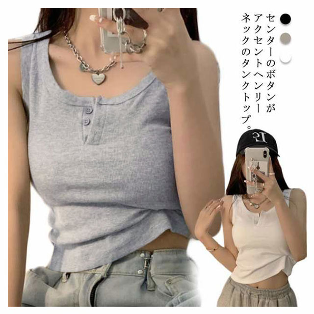 【送料無料】タンクトップ ヘンリーネック サマーニット レディース 前ボタン リブ ショート インナー 重ね着 夏服 シンプル カジュアル 大人 大きいサイズ きれいめ 小さいサイズ コンパクト
