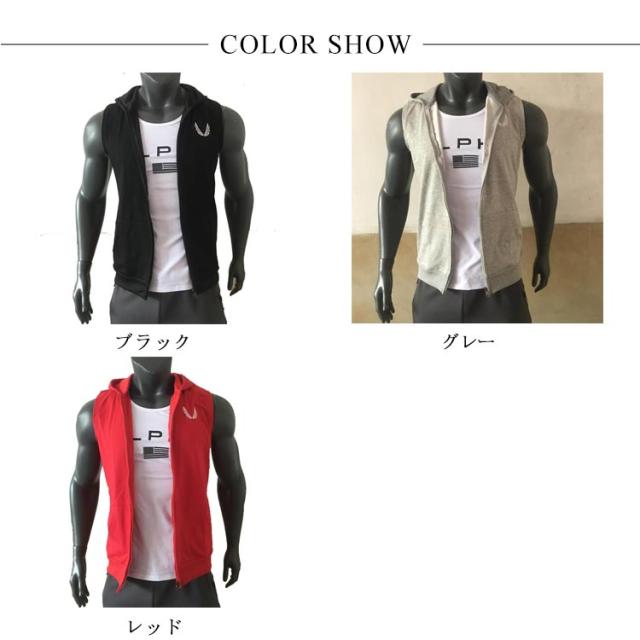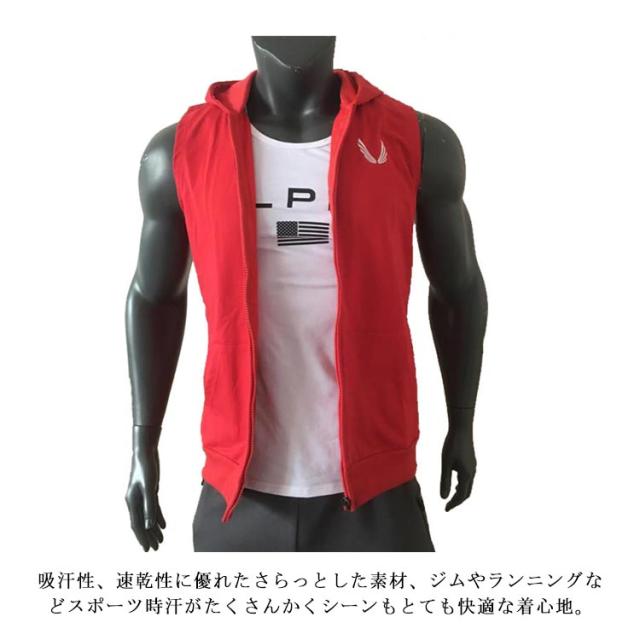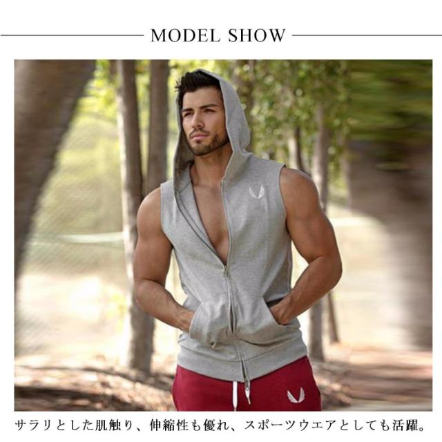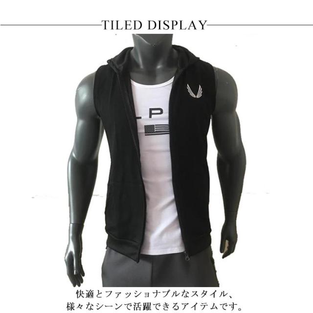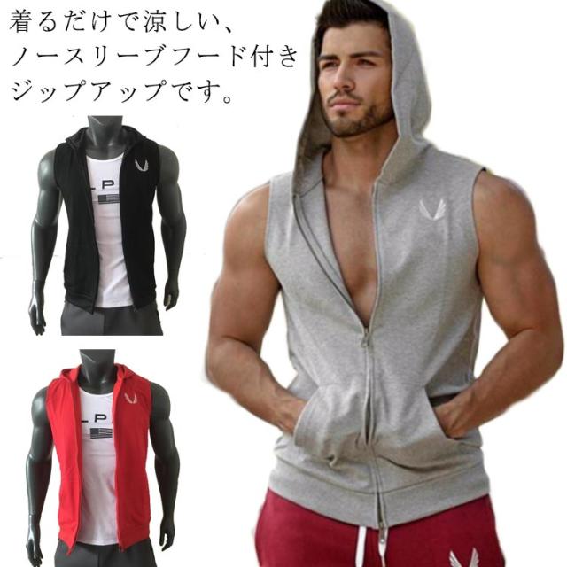ジップアップパーカー パーカー メンズ 袖なし フードパーカー 無地 スポーツ トップス 夏パーカー シンプル ストレッチ 大きいサイズ M L XL 2XL