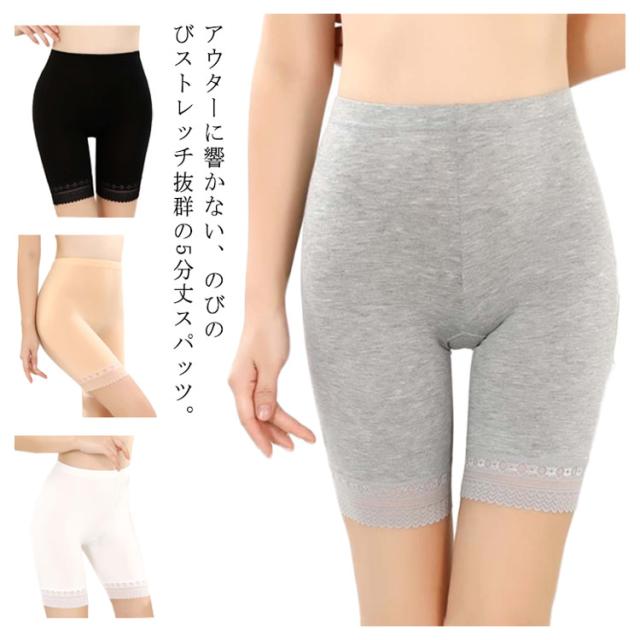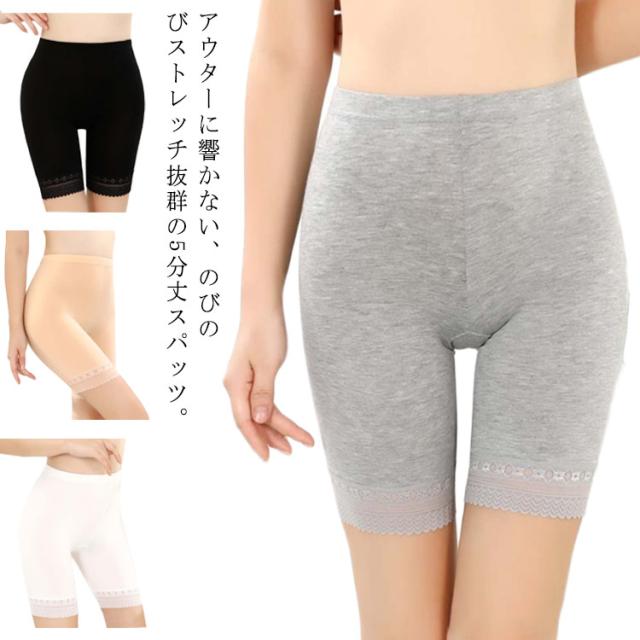 3分丈パンツ スパッツ 3分丈 ペチパンツ ペチコート ショーツ 送料無料 レディース インナー 下着 レース ストレッチ ハーフパンツ レギンス 大きいサイズ 肌着 黒 白 グレー 肌色 大きサイズ