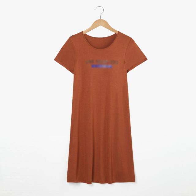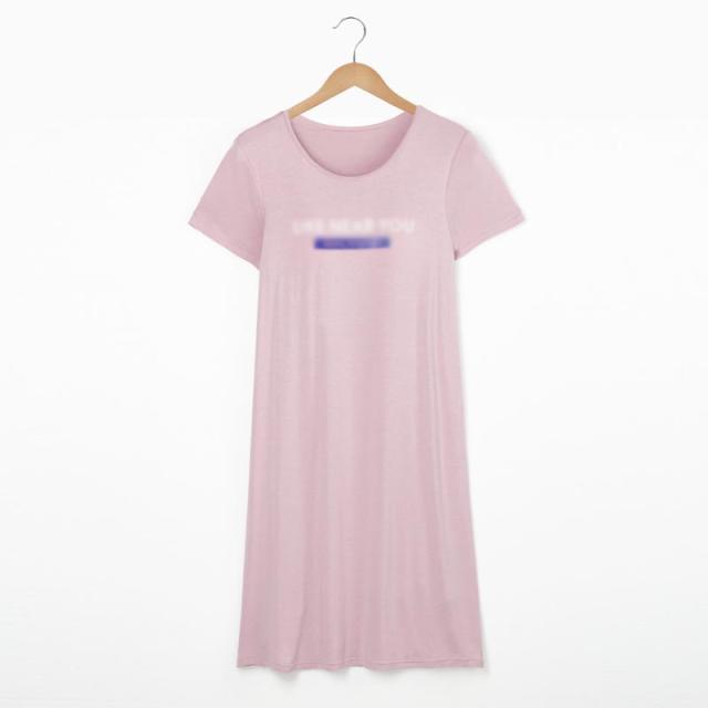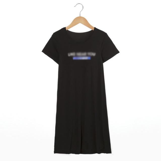 カップ付き ルームウエア モダール ワンピース ルームワンピース ロゴ ロングTシャツ パジャマ 部屋着 外出 レディース 夏 着心地いい