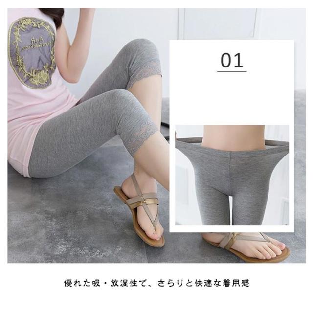 レギンス レディース コットン 夏 夏用 薄手 涼しい 7分丈 大きいサイズ スパッツ レース インナー ナチュラル LL 3L ヨガ ルームウェア ハーフレギンス 七分丈 黒 ブラック ホワイト グレー 送料無料