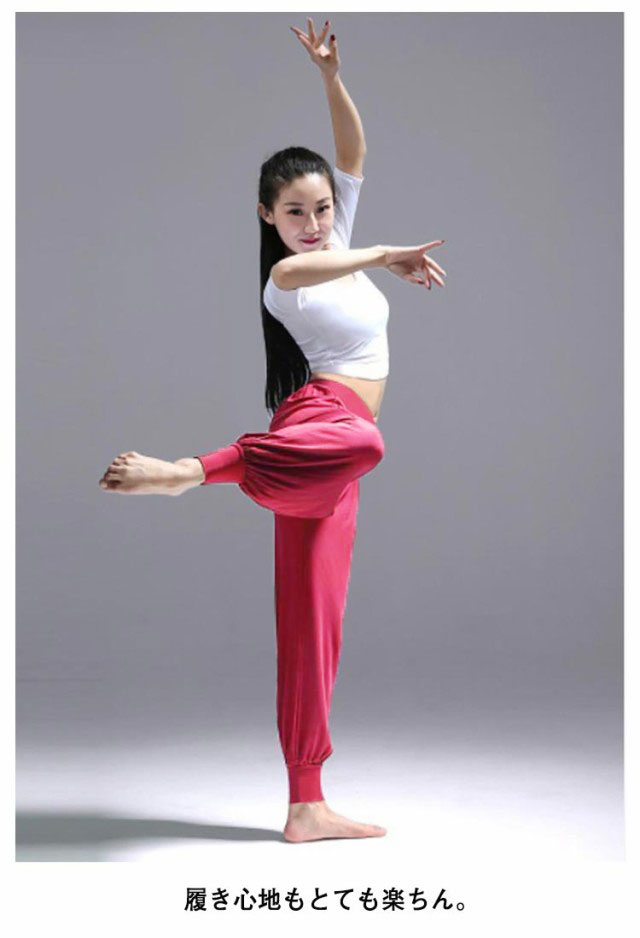 | ヨガにデイリーにゆったり履ける万能パンツ。 履き心地もとても楽ちん。 少し薄手素材ですのでスポーツなどに最適。 やわらかい生地なので、ルームウェア・パジャマとしても人気があります。 | |