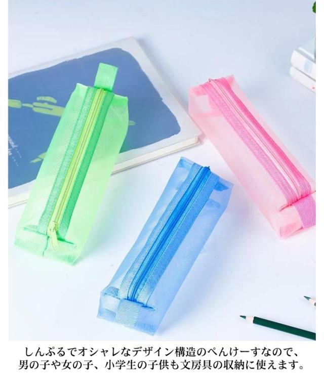 | メッシュ生地だから滑りにくく半透明で中身の確認ができる。 友達とお揃いも素敵な透明ペンケース。受験用にも大活躍! 丈夫なナイロン素材で長持ちできる!! 派手すぎない地味すぎないお洒落なメッシュペンケース。 掴みやすい引手付きで、ファスナーの開け閉めのスームズ♪ 奥行きのある形でジップ仕様、収納力が抜群です!! 透ける筆箱なのでどこに何が入っているのか探しやすいです。 しんぷるでオシャレなデザイン構造のぺんけーすなので、男の子や女の子、小学生の子供も文房具の収納に使えます。 | |