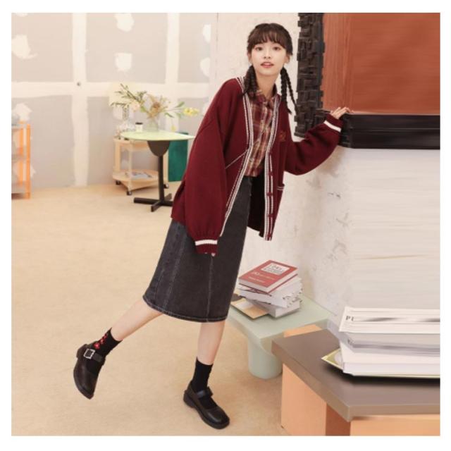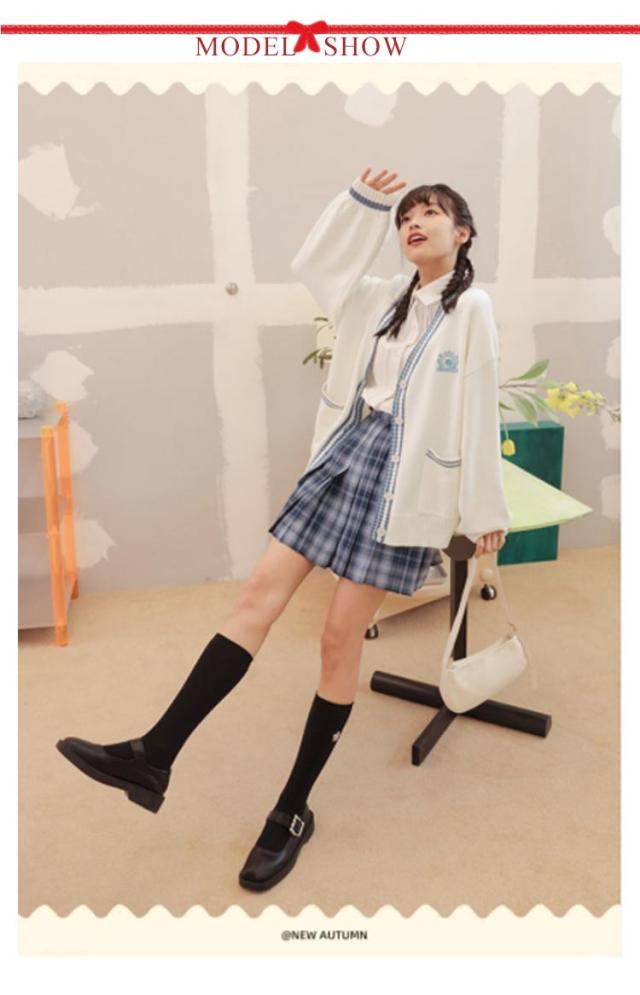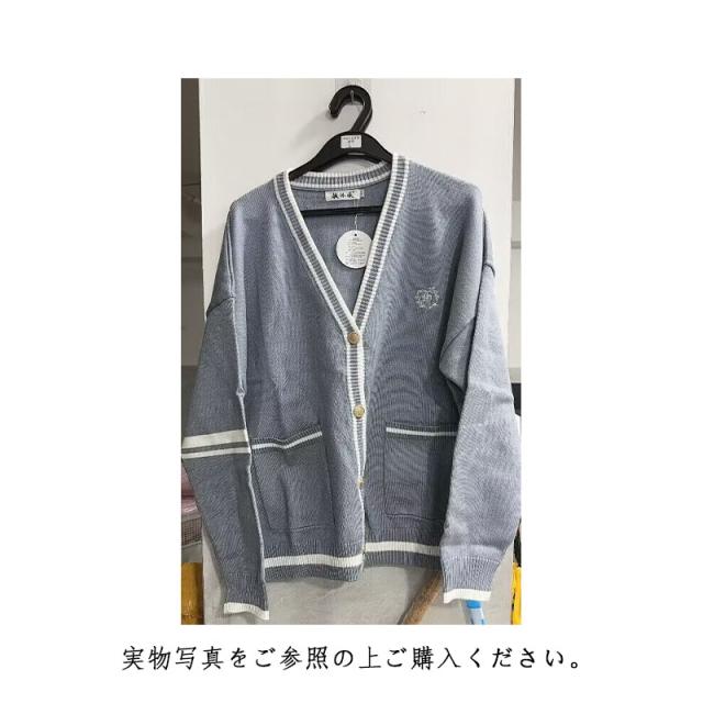 女子高生 制服 カーディガン レディース JK スクールカーディガン スクールセーター 長袖 Vネック 刺繍 ライン入り 前開き ボリュームスリーブ ポケット付き アウター 中学生 高校生 春 秋 全3色