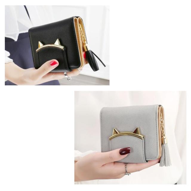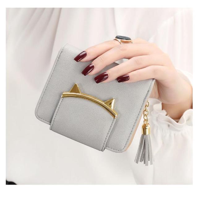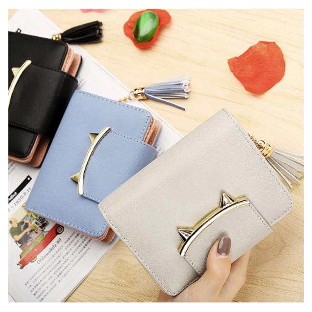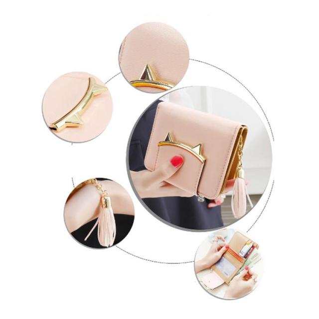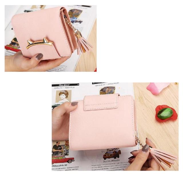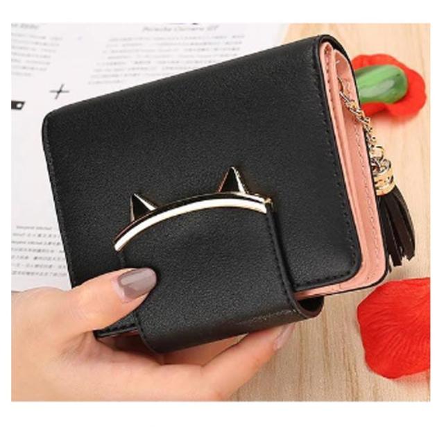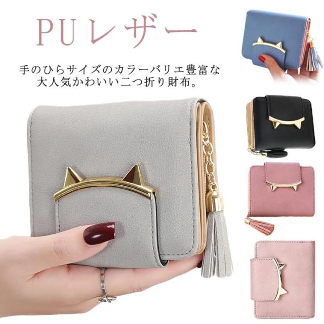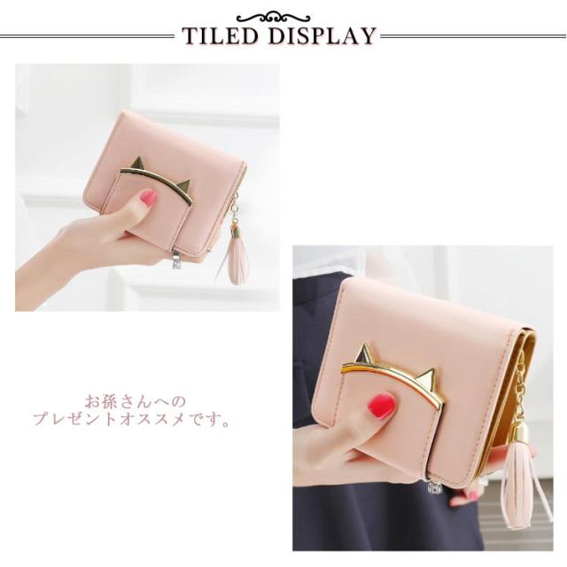二つ折り財布 レディース ミニ財布 キッズ 女子 猫耳 コンパクト 送料無料 かわいい フリンジ付き 札入れ 中学生 財布 小銭入れ カード収納 女の子 小学生 子供 猫 ねこ財布 修学旅行 誕生日 プレゼント