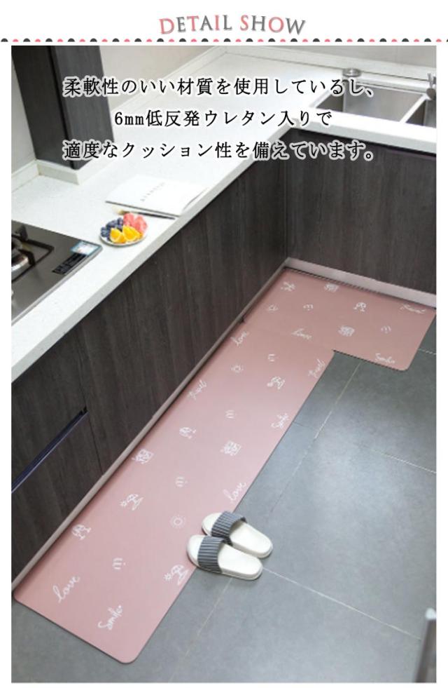 キッチンマット 拭ける 北欧 撥水 台所マット 厚さ6mm 低反発 キッチン マット 床マット おしゃれ 清潔 やわらか 洗濯不要 冷え対策 滑り止め PVC 防汚 クッション性