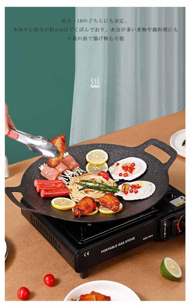 | 高い熱伝導率で「焼く」「炒める」「煮こむ」など、食材の旨味を引き出しながらいろんなお料理が楽しめますます 直火・IHのどちらにも対応、本体中心部分が約2cmほどくぼんでおり、水分が多い煮物や鍋料理にも 少量の油で揚げ物も可能 アウトドアだけでなくおうちごはんの調理器具として、お料理好きな方にもお勧めしたくなる優れもの 油が無くても焦げ付きにくく、後片付けも楽々 アウトドアやキャンプ時に手軽に持ち運べる軽量アルミ合金製 | |