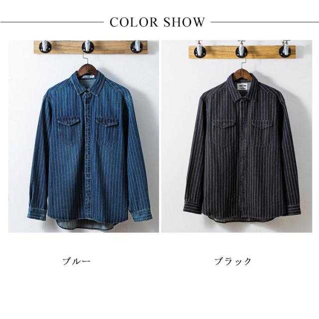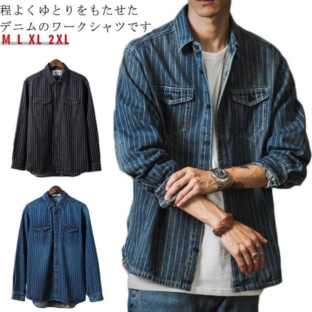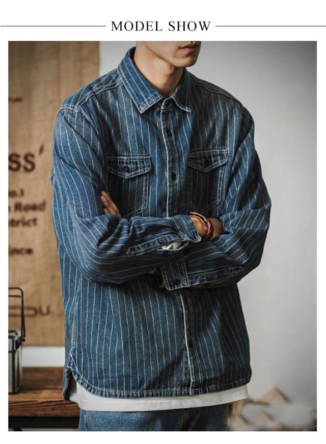 【送料無料】デニムシャツ ストライプ柄 メンズ CPOジャケット シャツジャケット 厚手 レトロ 春 秋 冬 羽織り カジュアルシャツ ワークシャツ 長袖シャツ 韓国ファッション カジュアル ストリート 大きいサイズ