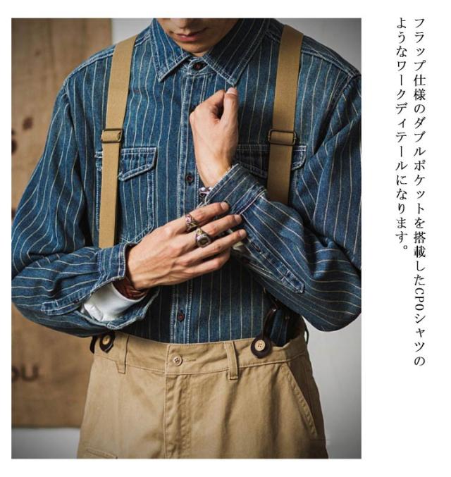 | 程よくゆとりをもたせたデニムのワークシャツです。 フラップ仕様のダブルポケットを搭載したCPOシャツのようなワークディテールになります。 綿混素材で仕上げたしっかりとハリのあるデニム生地です。通年着用いただける生地の厚みになります。 1枚着としてはもちろん、肌寒い季節には羽織りとしても使いやすいアイテムです。 汎用性が高く年代・季節問わず着こなししやすいのも魅力になります。 | |