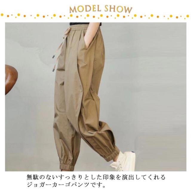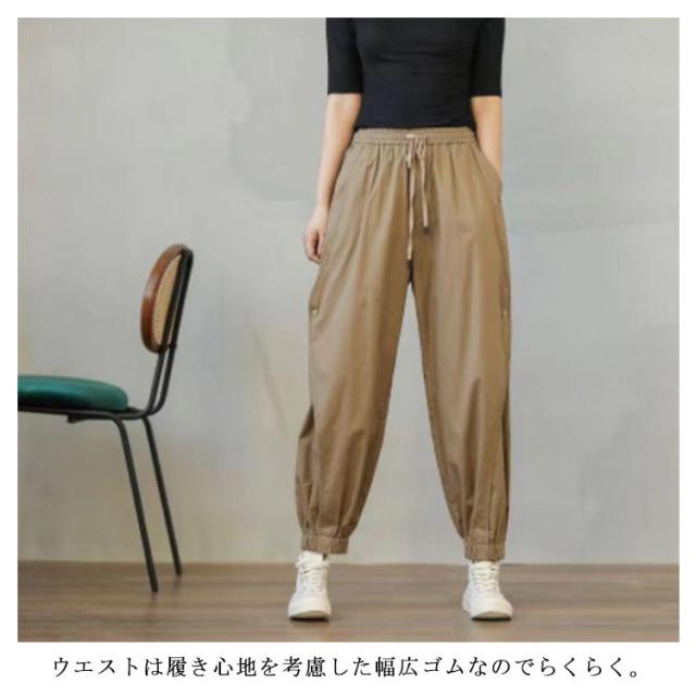 パンツ カーゴパンツ レディース ワイド 裾ゴム ジョグパンツ 九分丈 ジョガーパンツ キャンバス ウエストゴム ミリタリー サルエルパンツ ゆる股 春 夏 送料無料