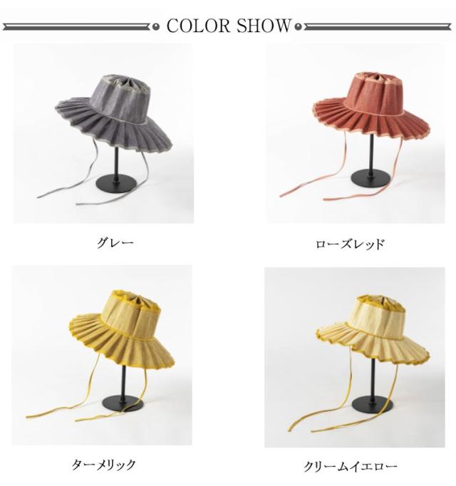 | ・被るだけでスタイリングのアクセントになるハット。 ・深めのつばが夏の日差しをカットしてくれます。 ・プリーツ状になったつばもとっても上品で、被るだけでおしゃれ度をグッと上げてくれます。 ・折り畳みができ、紐がついているので結ぶと風で飛ぶこともありません。持ち運びにもとても便利。 | |