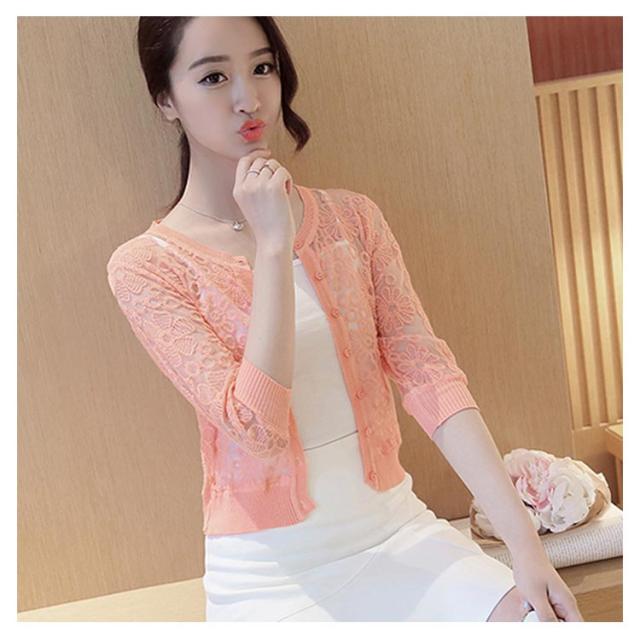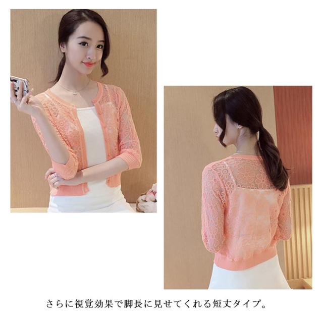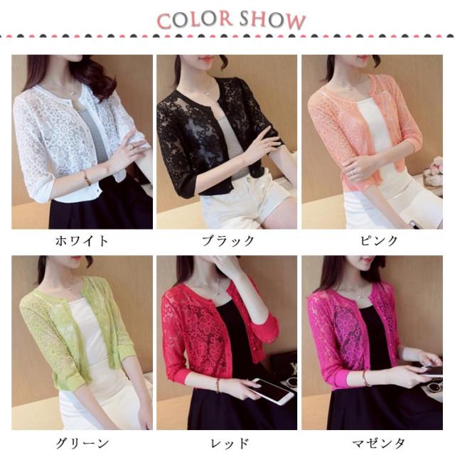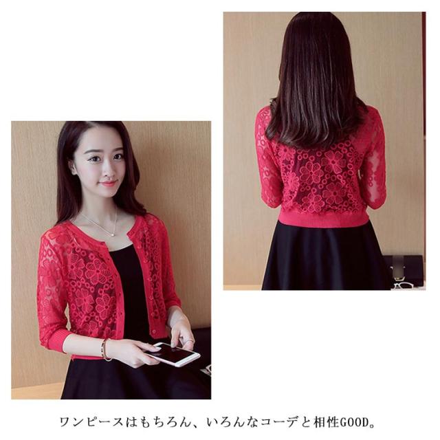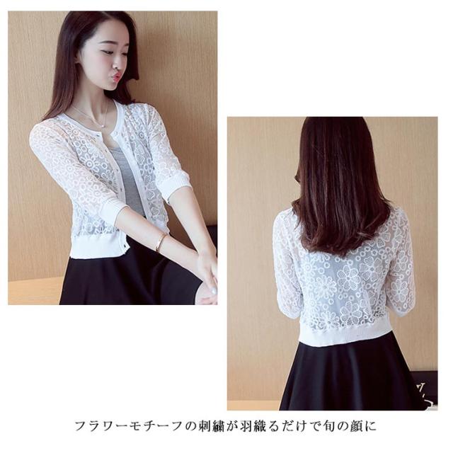 全6色×4サイズ!フラワーレース刺繍モチーフ ニットカーディガン カーディガン ボレロ ニット 羽織り クルーネック 花柄 レース 刺繍 ショート丈 春 夏 秋