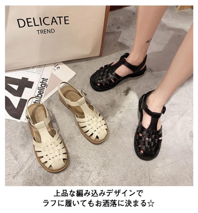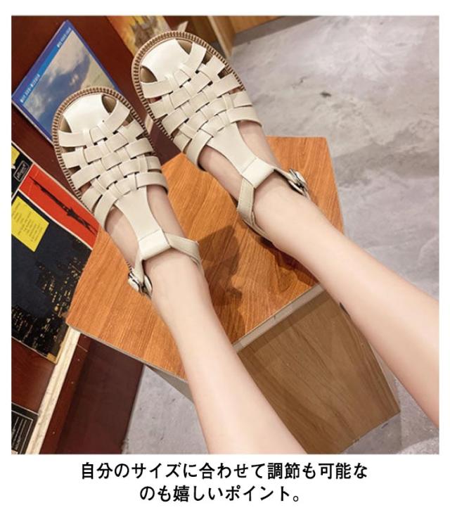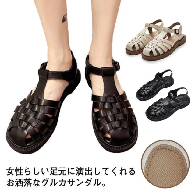 グルカサンダル レディース サンダル ローヒール 厚底 フラット 編みデザイン ビーチサンダル グルカ 歩きやすい 痛くない 柔らかい ストラップサンダル PUレザー お洒落 プール 旅行 送料無料