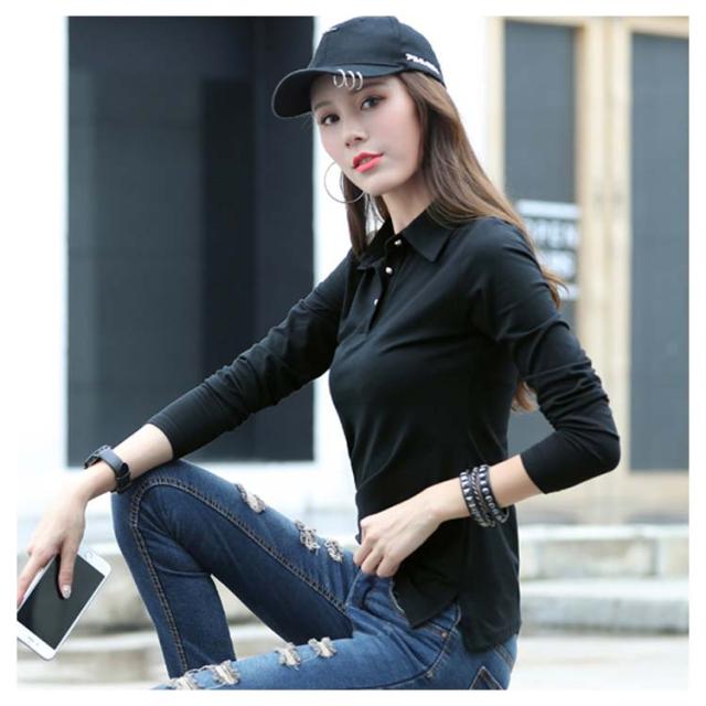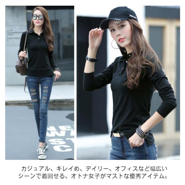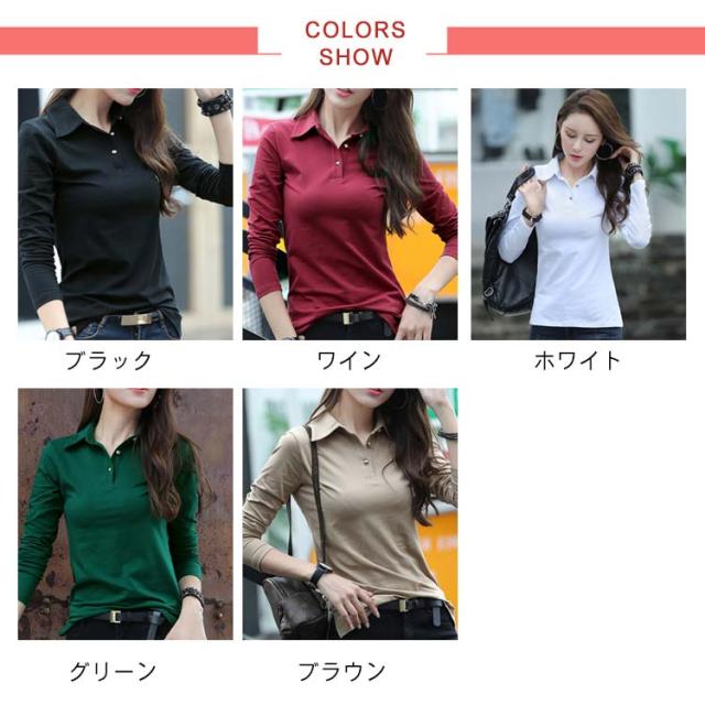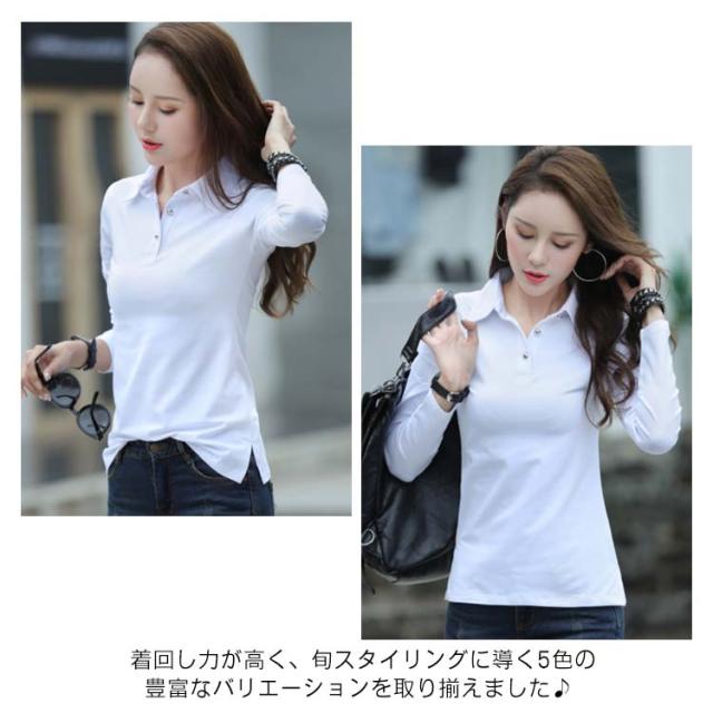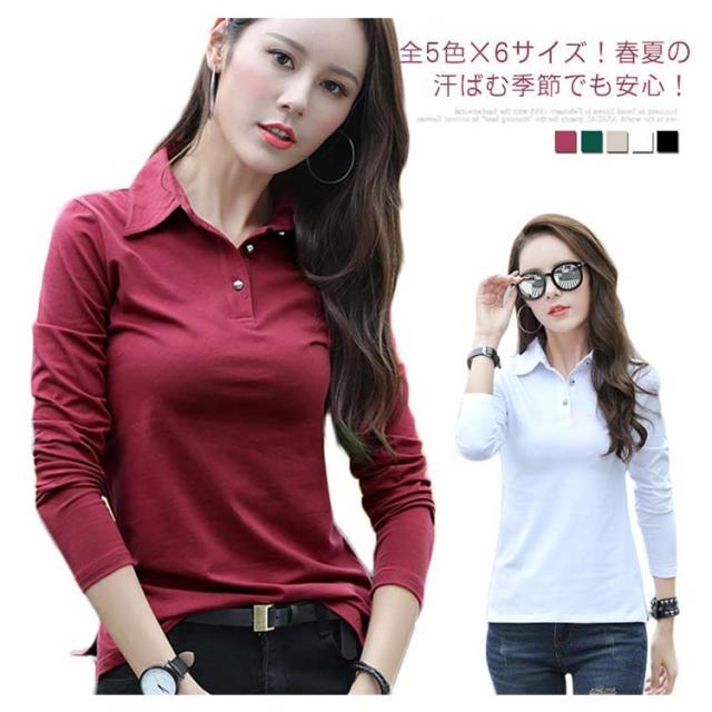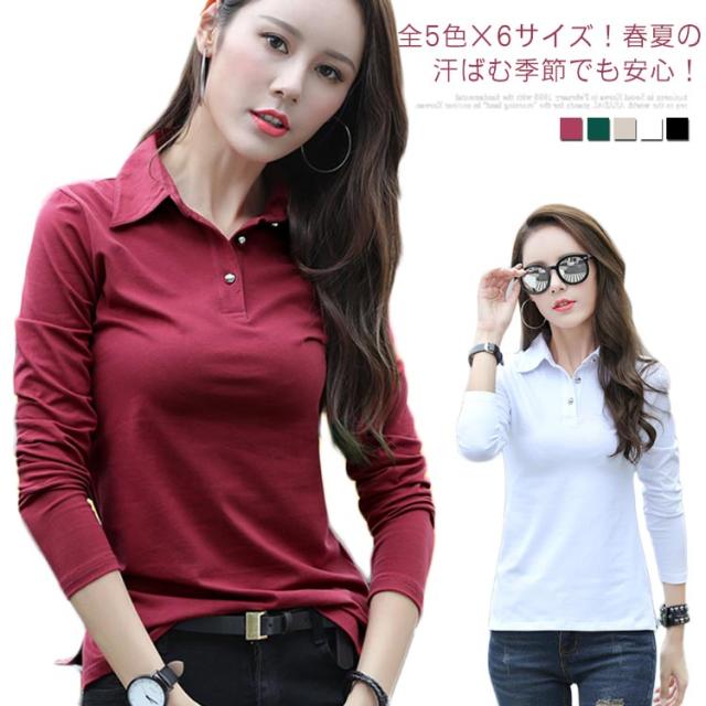 全5色×6サイズ!ポロシャツ レディース 襟付き tシャツ カットソー 長袖 トップス 無地tシャツ 長袖tシャツ 春服 春物 シンプル おしゃれ 大きサイズ