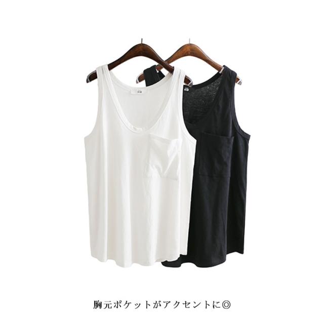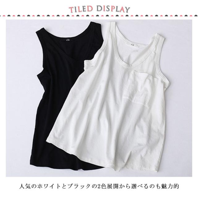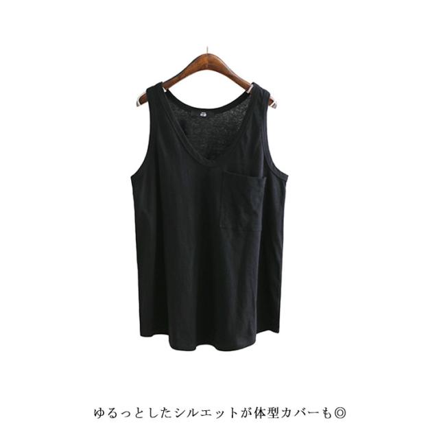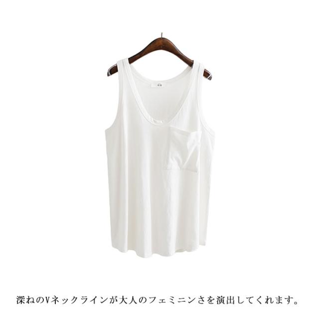 Vネック タンクトップ ゆる ノースリーブ トップス 送料無料 レディース ポケットあり tシャツ レイヤード 夏 セクシー おしゃれ カットソー