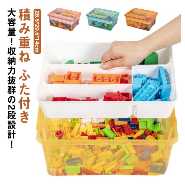 収納ケース ブロック おもちゃ収納 仕切り おもちゃ 収納 ブロック 収納 ケース キッズ お片付け ブロック収納ボックス フタ スタッキング フタ付き 知育家具 展示台コレクション 2段 おもちゃ箱 子供 ギフト