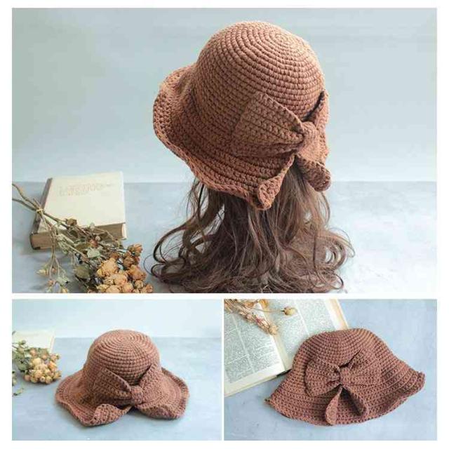 送料無料 ニット帽 レディース ニット 帽子 キャップ ハット つば帽子 手編み 防寒 リボン 小顔効果 かわいい 秋冬 冬 無地 あったか 通勤 通学 プレゼント ギフト