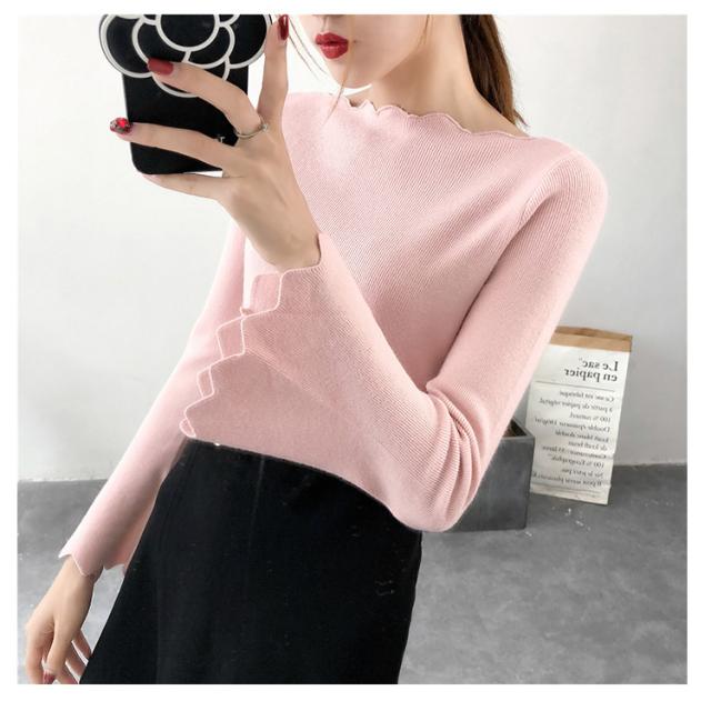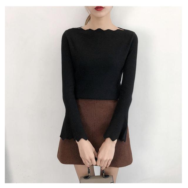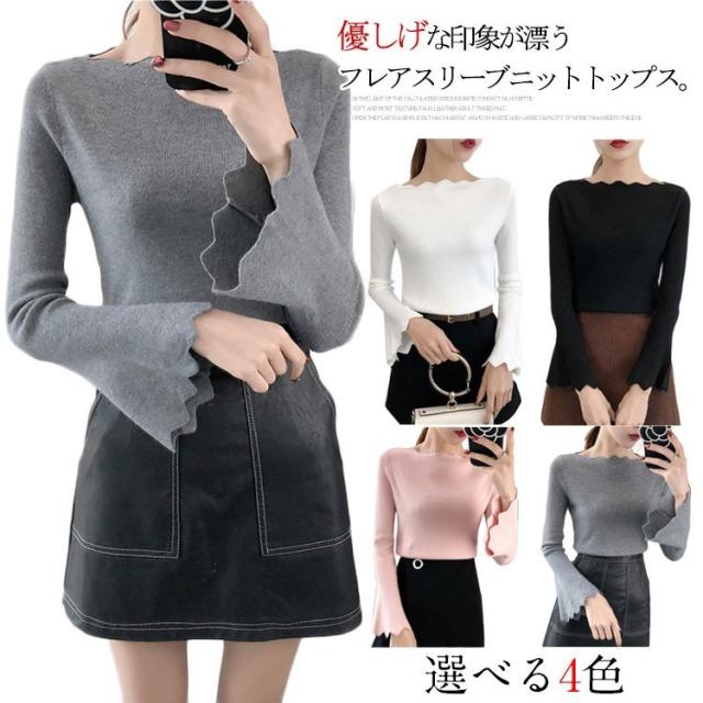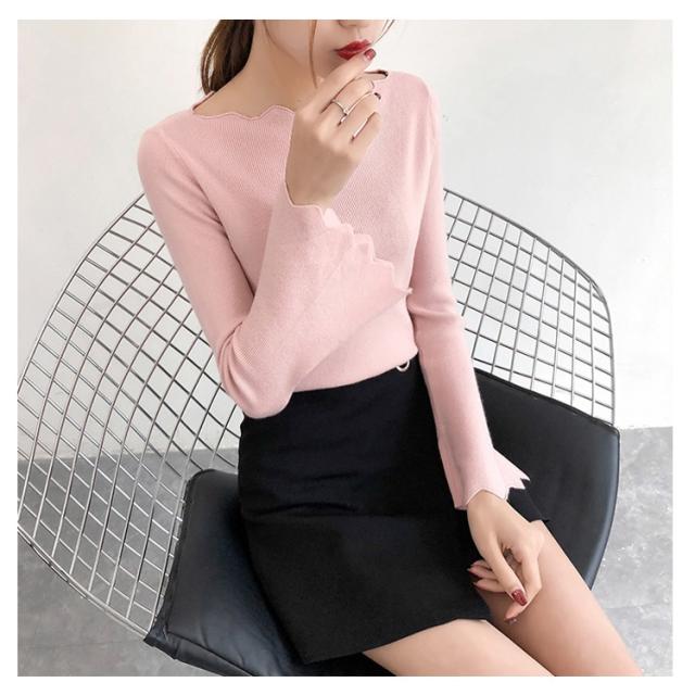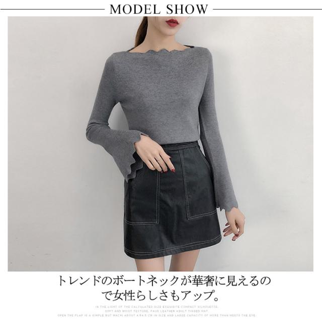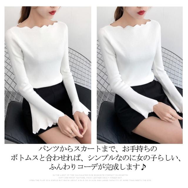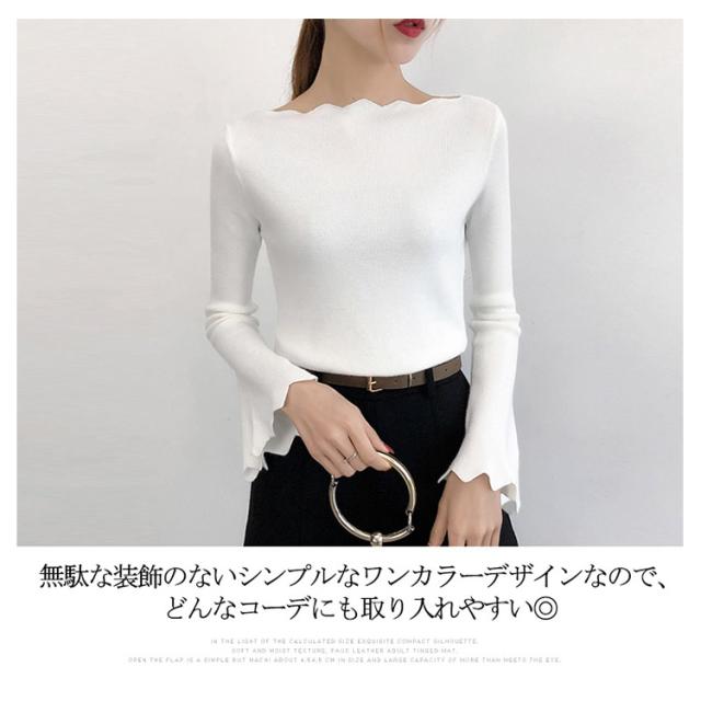 波デザインニット シンプル 無地 ニット セーター ボートネック 薄手