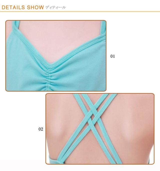 | バックのクロスが特徴のおしゃれなレオタード。 サイズも豊富でお子様からジュニアまで安心して着用できます。 キャミソールタイプで前はシンプルで、使いやすいデザインです。 肩ひもが二本になっているので肩ひもがずれ落ちにくいのもポイント。 背面は空き過ぎず、バッククロスがアクセントになっていて、かわいいですよ。 コットン入りで肌触りのよい生地を採用、汗をかいても早く吸収してくれるので肌にも優しくなっています。 カラーバリエーションも豊富、気分やシチュエーションで色々なカラーが選べます。 | |