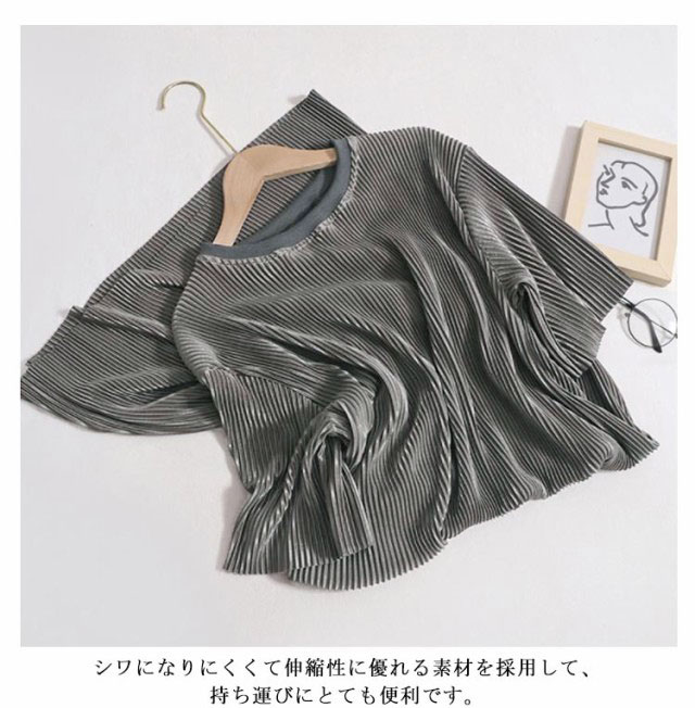 | レディース用、ロング丈Tシャツ プリーツワンピース クルーネックはカジュアルでも綺麗めでも、高見えコーデがきまります。 袖口は大きく作ったデザインはの窮屈感ない快適な着心地を満足させます。 落ちるゆったりシルエットで身体のラインを拾い過ぎないのも嬉しいポイント。 シワになりにくくて伸縮性に優れる素材を採用して、持ち運びにとても便利です。 シンプルなデザインで普段使いは勿論、ルームウェアとしても使える一枚です。 | |