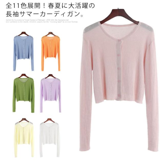 全11色!サマーカーディガン カーディガン レディース ニットソーカーディガン ニットカーディガン ショート丈 無地カーディガン 長袖 羽織り 春夏 紫外線対策 冷房対策 ボタン式