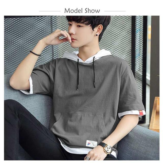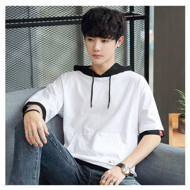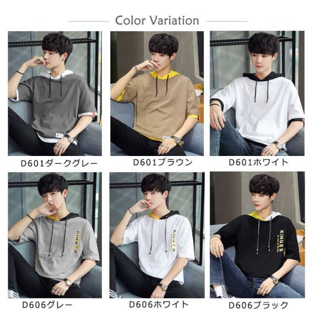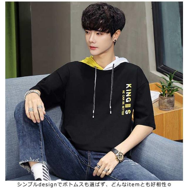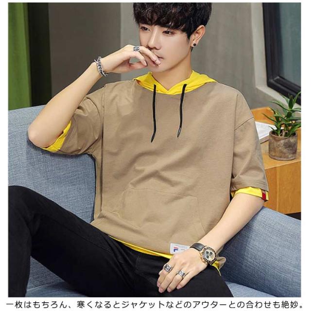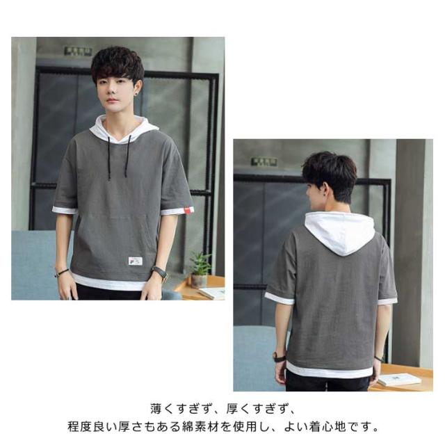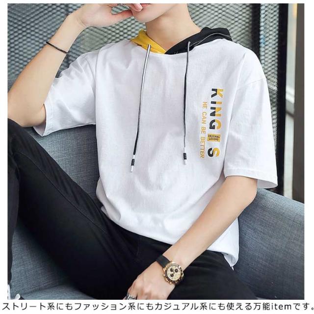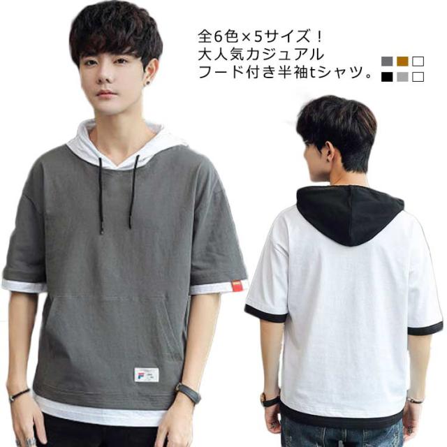送料無料 全6色×5サイズ!tシャツ メンズ フード付き 半袖tシャツ フード付きtシャツ 半袖パーカー プルオーバー トップス シンプル 大きサイズ 夏服 夏物
