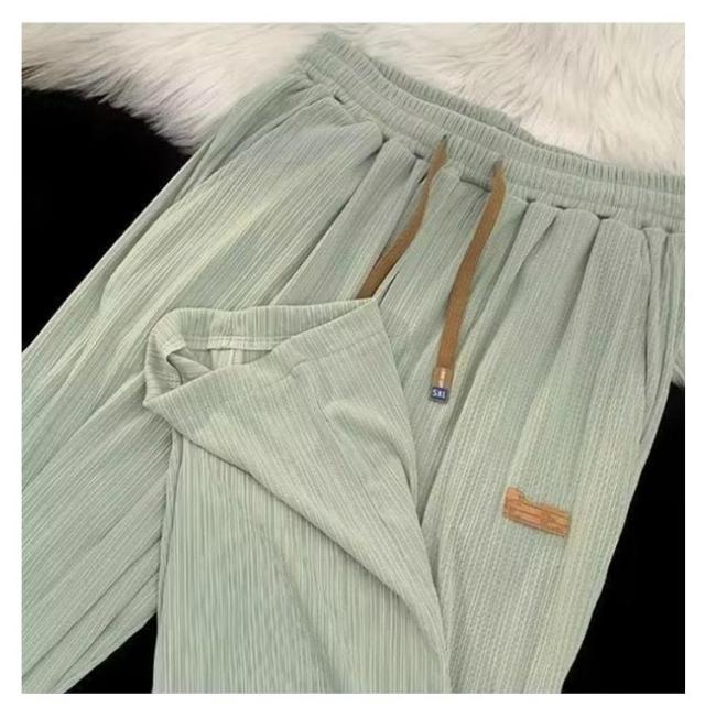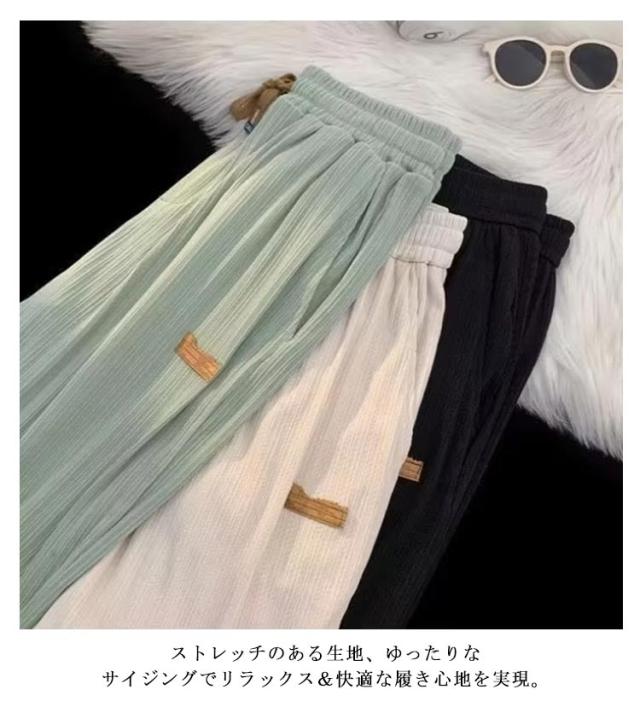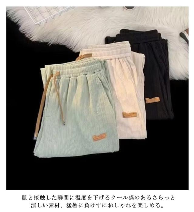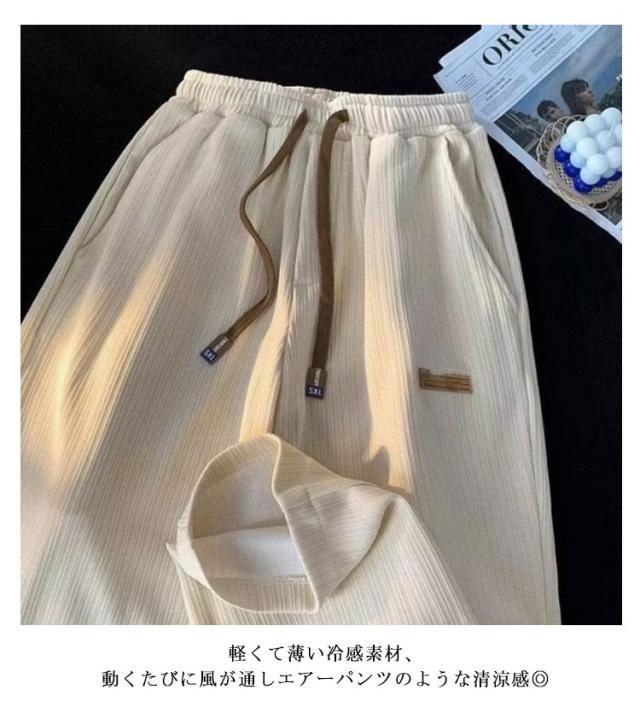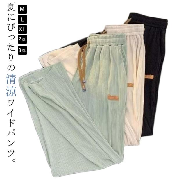 冷感パンツ ワイドパンツ アイスシルクパンツ メンズ リブパンツ ゆったり サルエル アイスシルクロングパンツ ゆったり ストレッチパンツ 涼しい ひんやり 接触冷感 薄手 スウェットパンツ スポーツウェア イージーパンツ ゆるパン