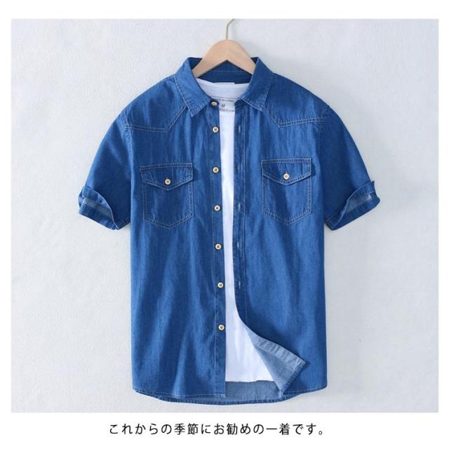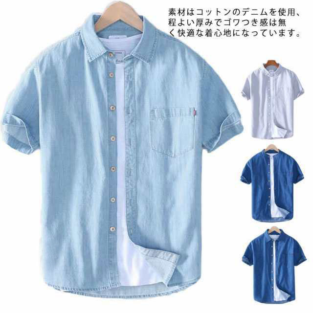 デニムシャツ 半袖 メンズ 半袖シャツ カジュアルシャツ タイトシャツ 着痩せ ゆったり 通勤 通学 夏 メンズファッション 新作