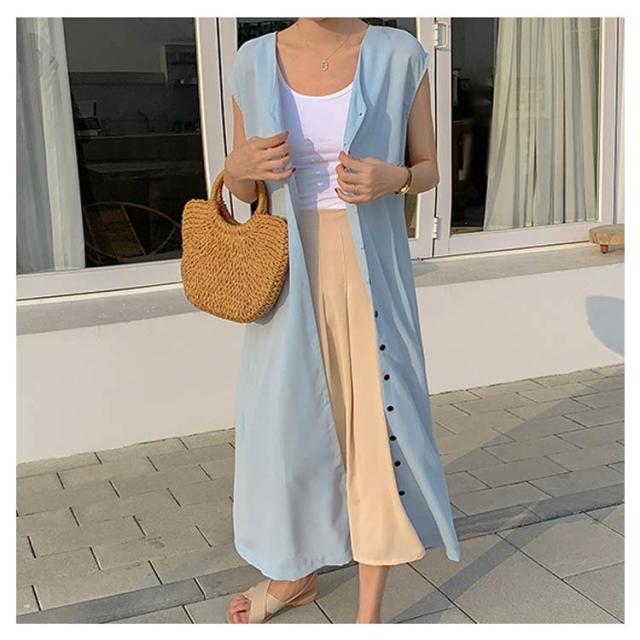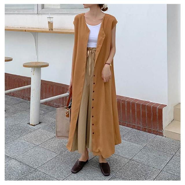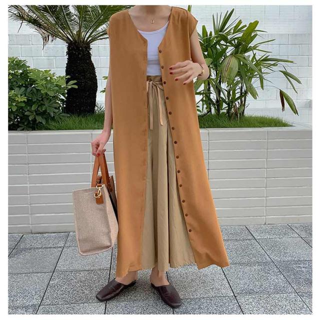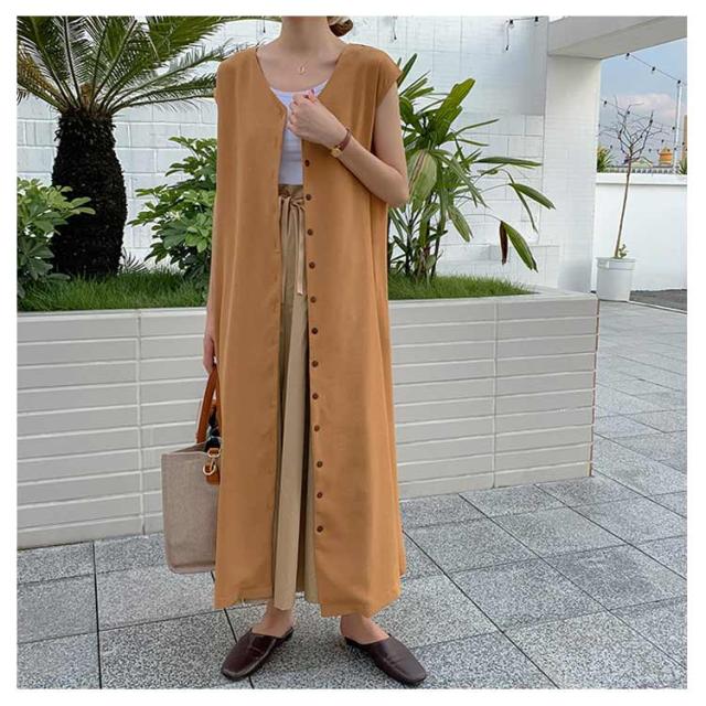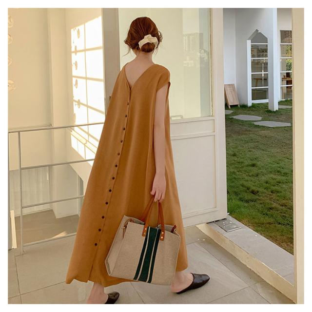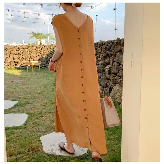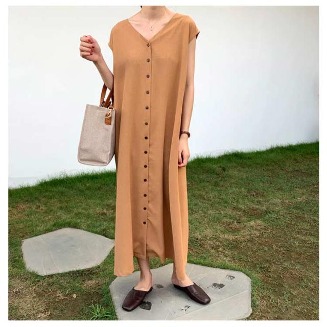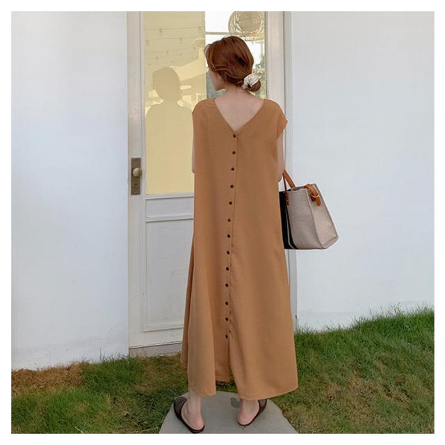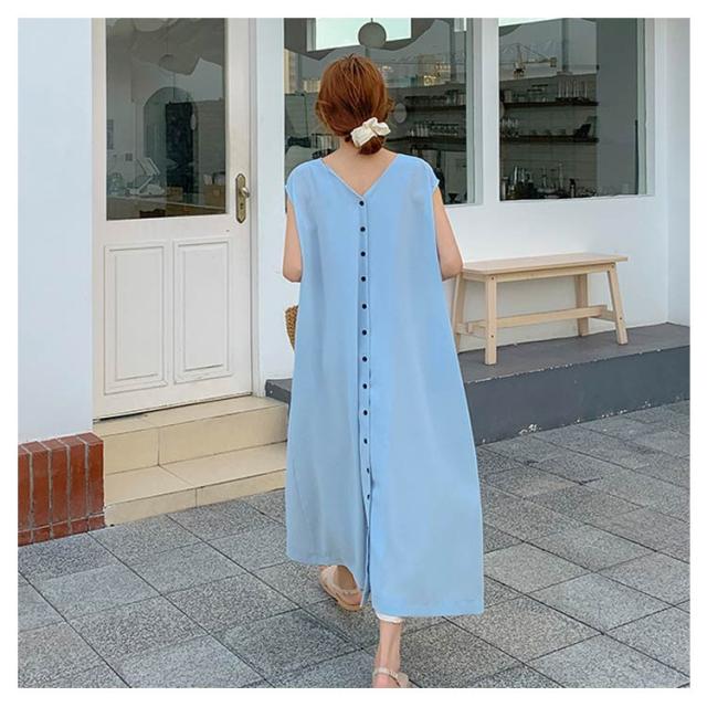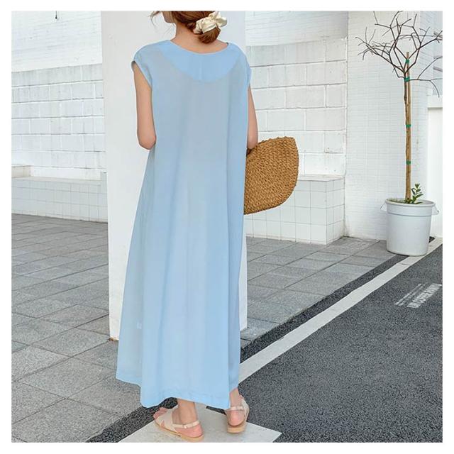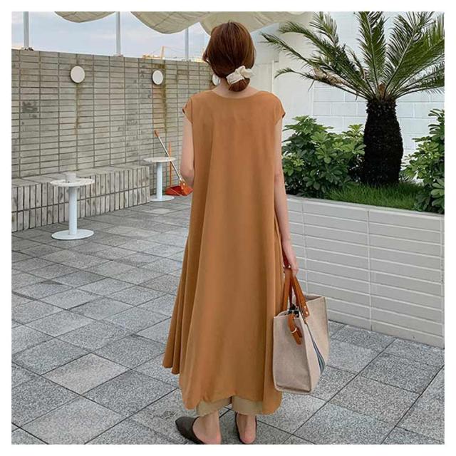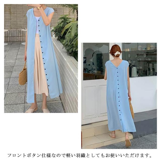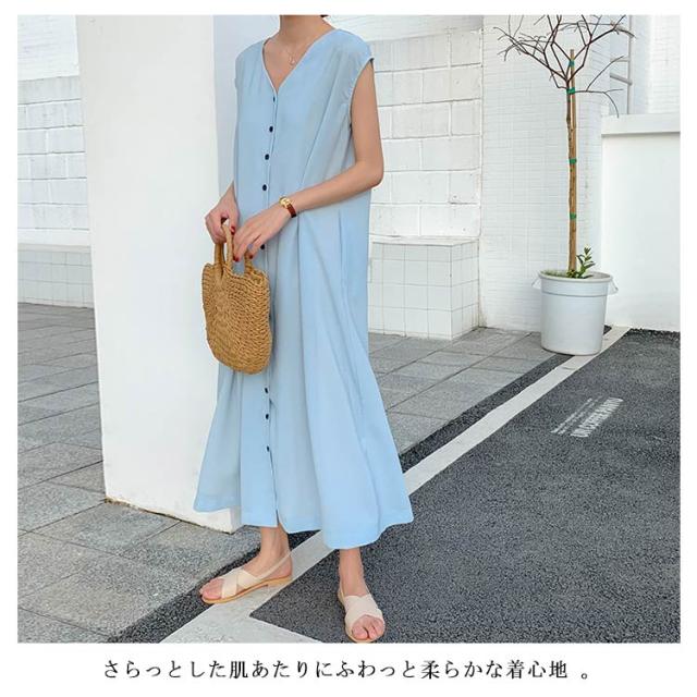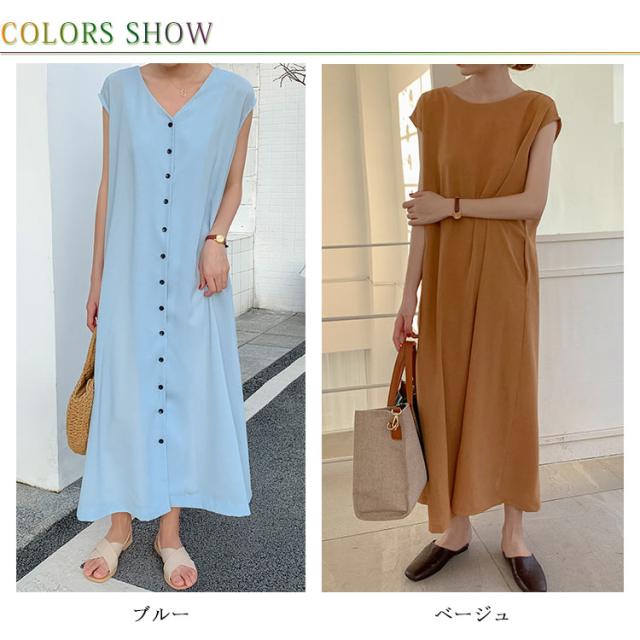 【送料無料】ワンピース ノースリーブ 夏 ロング マタニティ 大人カジュアル きれいめ 2way 後ろボタン 前ボタン Vネック フレンチスリーブ レイヤード ゆったり 妊婦服 産前 ルームウェア リラックスウェア サマーワンピース