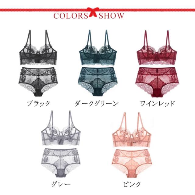 | シースルーレースで大胆の透け感のあるブラセット。 豪華の花柄刺繍で美しく魅力溢れるバストを演出。 シースルーレースでエアリーな軽やかを実現し、通気性抜群、全然蒸れなく、蒸し暑い季節に爽快に楽しめる。 一度着るとやみつきに♪もう手放せないシースルーレースブラ ショーツ セット。 | |