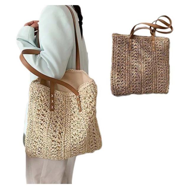 レディース 夏 トートバッグ 編むバッグ トート バッグ 大きめ ナイロン 手提げかばん 無地 大容量 軽量 斜めかけ 普段使い かごバッグ サマーバック 旅行 おしゃれ シンプル 夏 ビーチ 海 ショピングバッグ