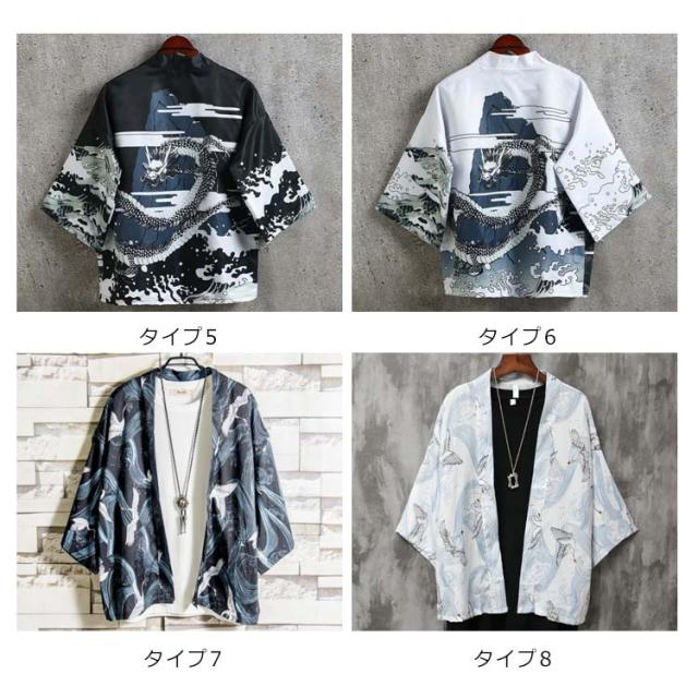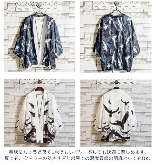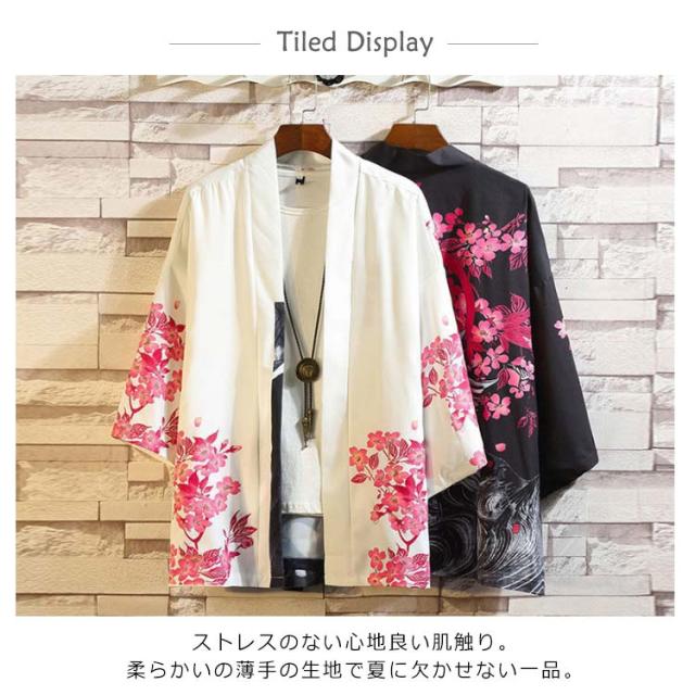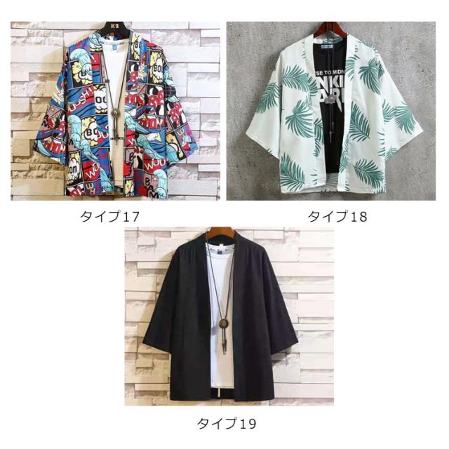 メンズ カーディガン 甚平風 夏新作 サマーカーディガン 七分袖シャツ 着物 和式 羽織 カジュアル おしゃれ 大きいサイズ 春 夏 開襟 アウター トップス シンプル 無地 総柄 重ね着 ゆったり 体型カバー 花火大会 プレゼント ギフト 送料無料