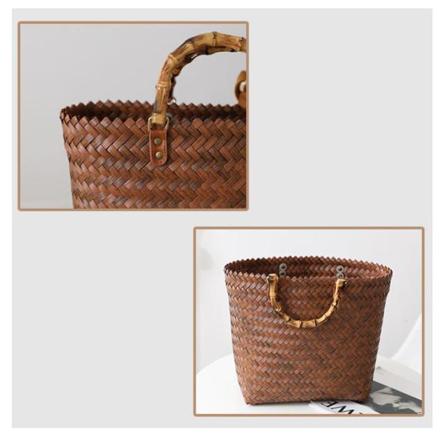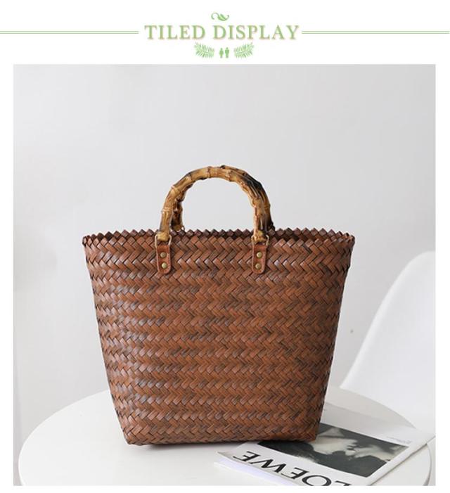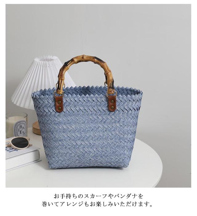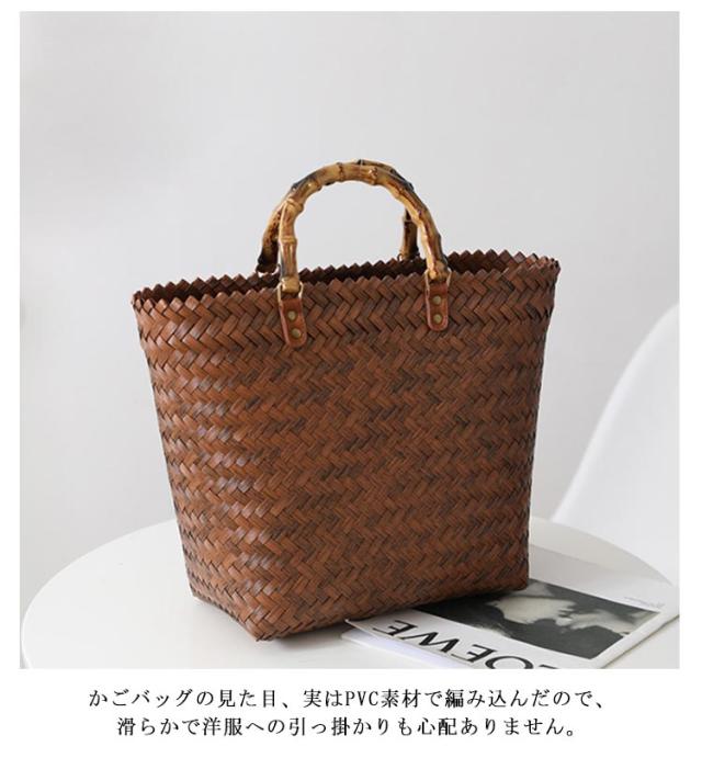 | カジュアルにもキレイめにも一年中使える編み込みトートバッグ かごバッグの見た目、実はPVC素材で編み込んだので、滑らかで洋服への引っ掛かりも心配ありません。 バンブー調持ち手が上品でナチュラルな雰囲気が溢れ、コーデをセンスよく見せてくれます。 夏にはかごバッグのように、秋冬には抜け感をプラスしてくれる、もはや季節を問わずシーズンレスで使えるおしゃれアイテムとして大人気のかごバッグ。 お手持ちのスカーフやバンダナを巻いてアレンジもお楽しみいただけます。 | |
