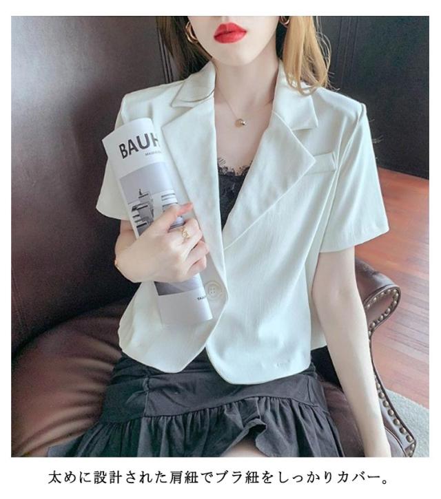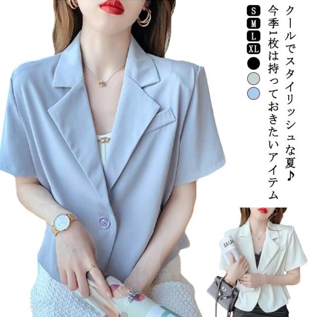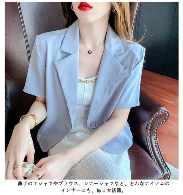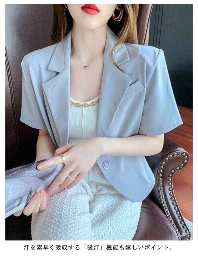 テーラードジャケット ショート丈 半袖 サマージャケット レディース 通勤 スーツジャケット 春夏 半袖ジャケット 夏 きれいめ 着痩せ 普段着 ジャケット 半袖ジャケット 通勤 オシャレ カジュアル 無地 韓国風 上品 お出かけ 結婚式 披露宴 ギフト 送料無料