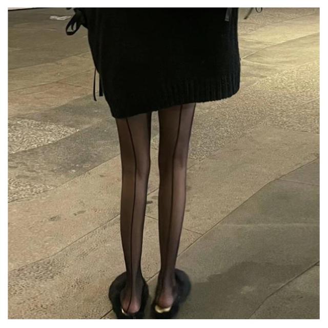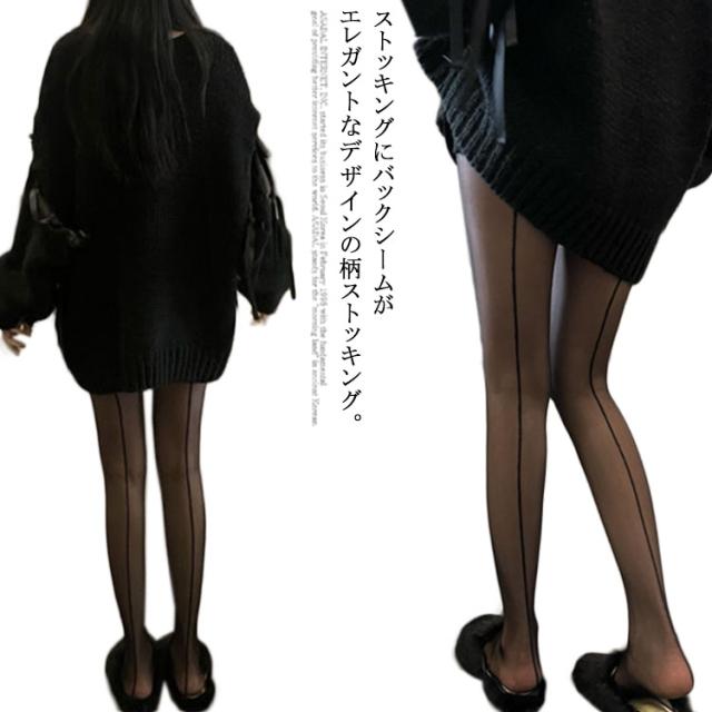 【送料無料】 イタリアバックシーム柄 ストキング 黒ストッキング 柄ストッキング 柄 バックシーム 黒 タイツ オールスルー パンスト パン