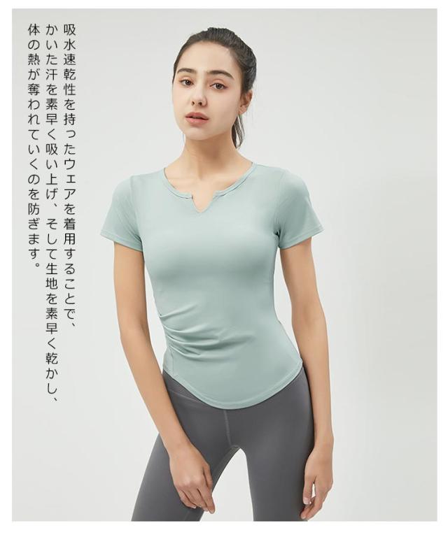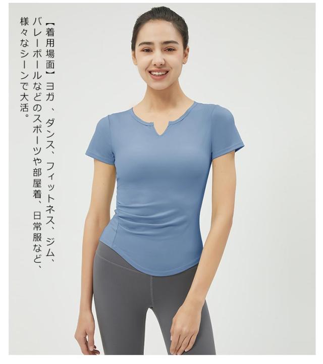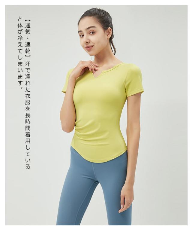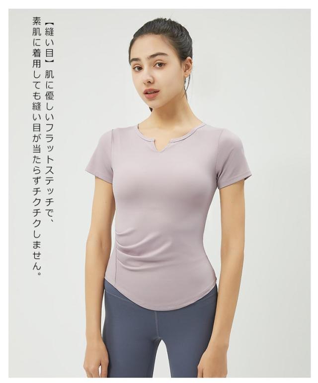 送料無料 ヨガウェア トップス Tシャツ かわいい おしゃれ レディース 半袖 ヨガウエア ホットヨガ ウォーキング フィットネス ピラティス ジム めくれにくい くすみ ルームウェア おうちヨガ 吸汗速乾 UVカット