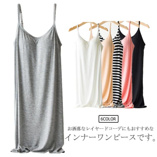 インナーワンピース キャミソール カップ付き レディース ルームウェア ペチコート 柔らかい ロング丈 下着 透けない 通気性 部屋着 送料無料