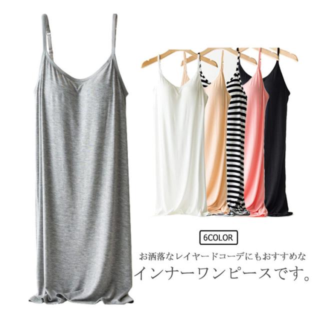 | お洒落なレイヤードコーデにもおすすめなインナーワンピースです。 さらっとした肌触りで着心地がよく、弾力性や吸汗通気性も優れます。 カップ付きなので、家事や育児で忙しいママにもぴったりです。 快適な着心地でルームウェアやナイトウェアとしてもおすすめです。 浴衣を着るときの汗対策やイベント・パーティーなどでドレスの透け防止のペチコートにも。 | |