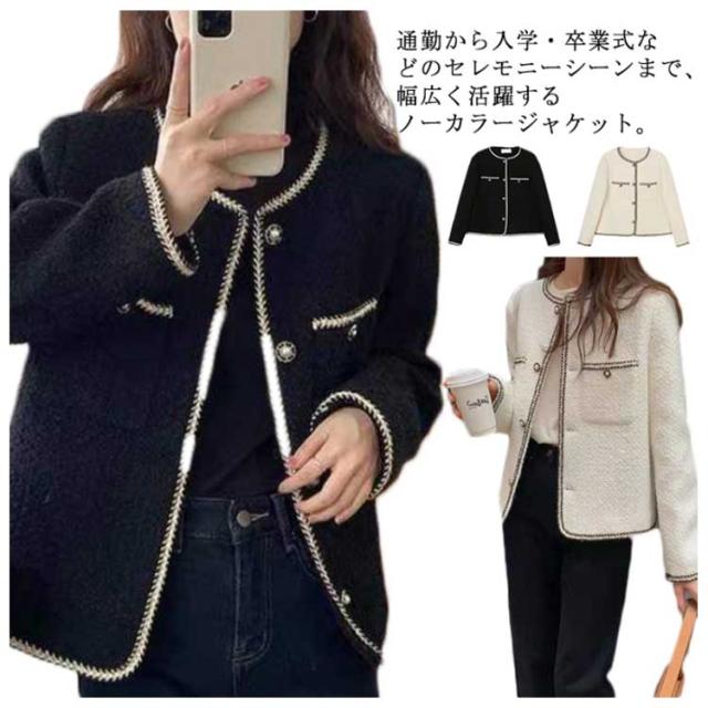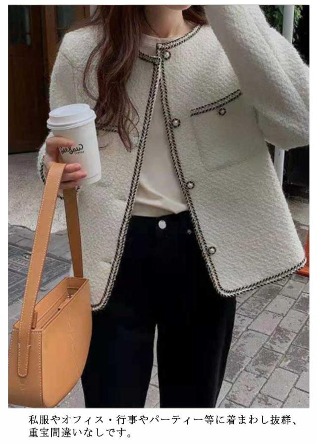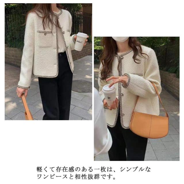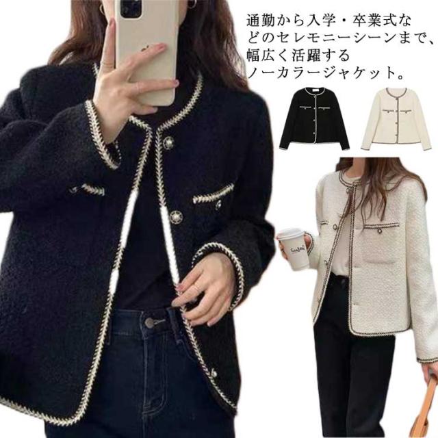 ジャケット レディース 長袖 ツイード アウター 春服 秋服 カーディガン ノーカラージャケット おしゃれ 入学式 卒業式 卒園式 韓国ファッション 上品 きれいめ オフィス 通勤 OL フォーマル 結婚式