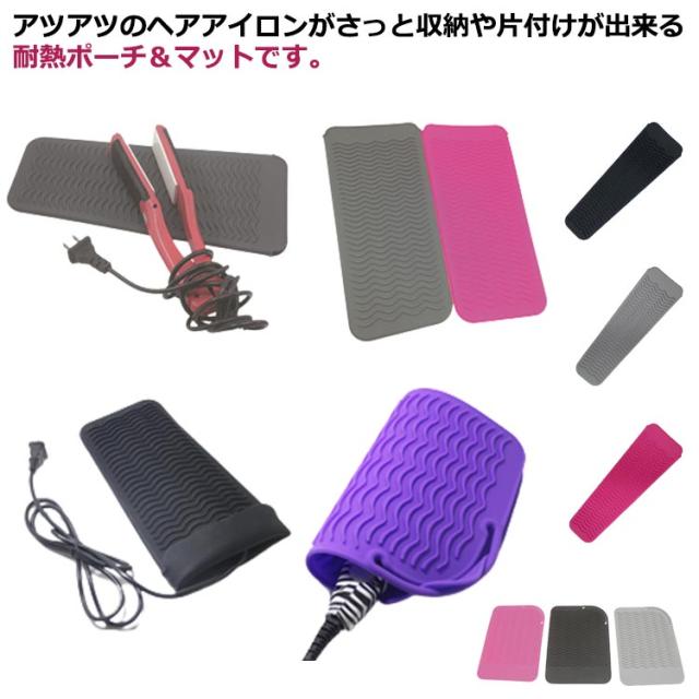 全2種類×2サイズ シリコン製 ヘアアイロンマット ヘアアイロン耐熱ポーチ カバー 耐熱シリコンポーチ 耐熱温度230度 2way コテ 火傷や焦げ防止 耐熱 ヘアアイロンカバー ヘアアイロン
