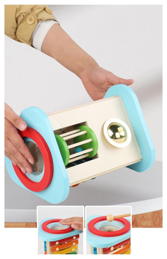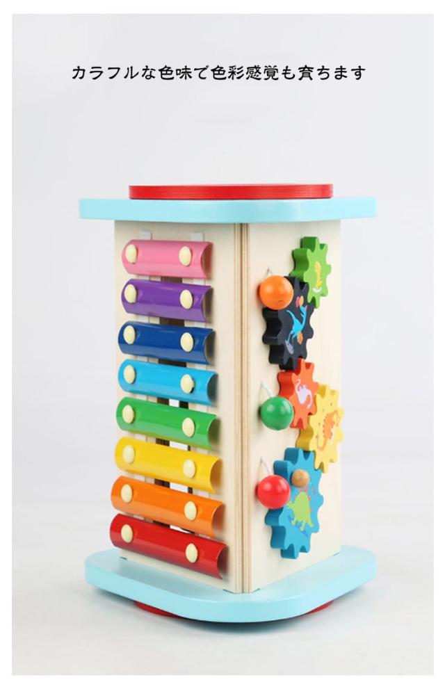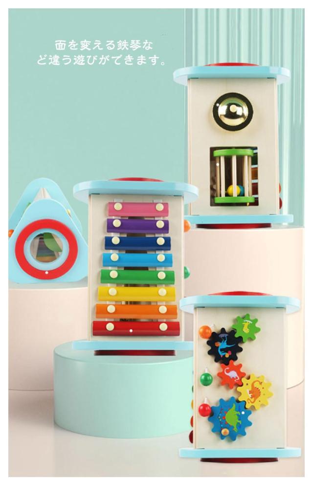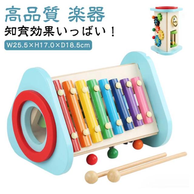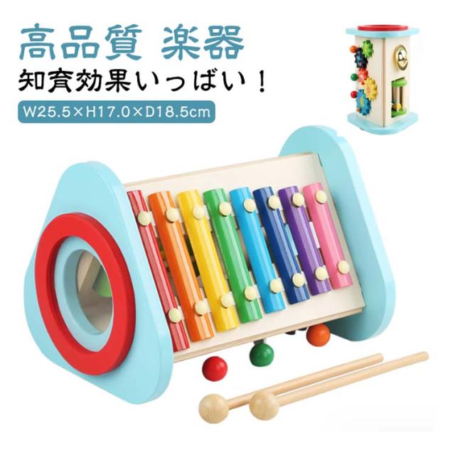 | 知育効果いっばい! 聴覚の発達を促すのはもちろんのこと、手指の発達・集中力などもしっかりと育みます。 あそびの要素が盛りだくさんなので。 お子様が飽きることなく長く遊べます。 ボリュームたっぷりでギフトにもお勧めです。 カラフルな色味で色彩感覚も育ちます 面を変える鉄琴など違う遊びができます。 「たたく」「回す」「こする」という動作から音が出る楽しさを自分で発見し、音の違いも自然に理解していきます。 | |