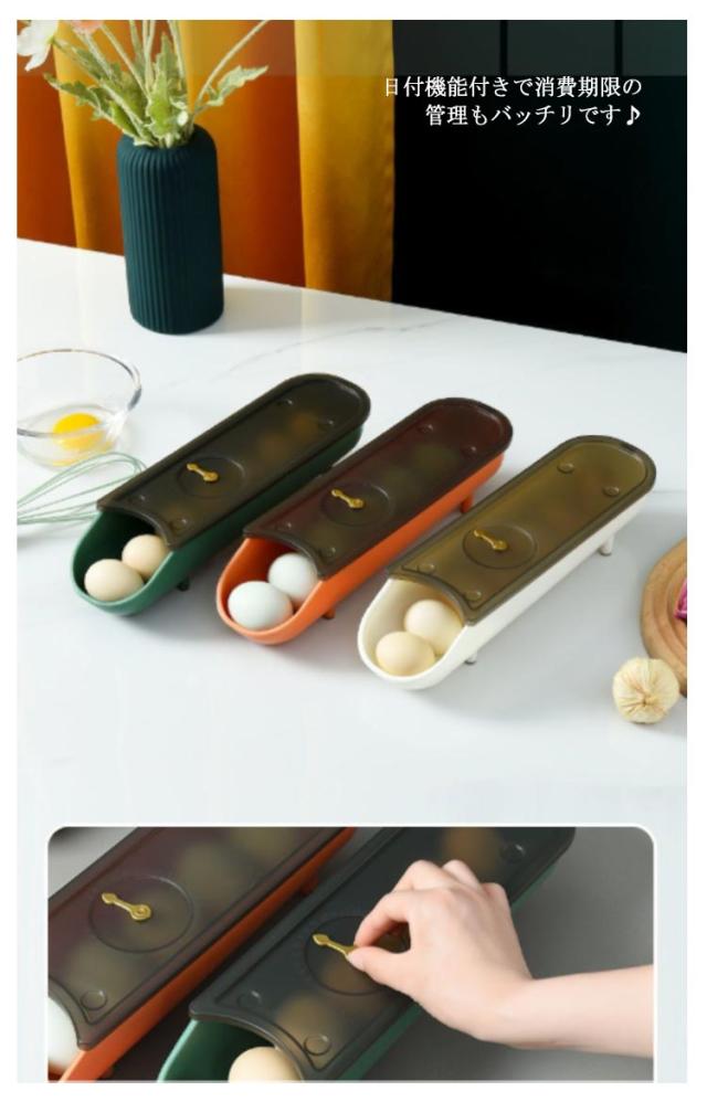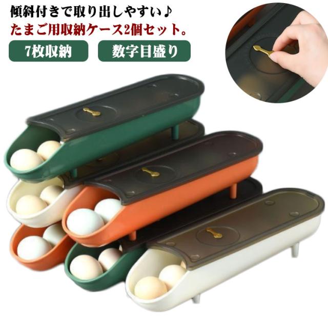 | 傾斜付きで取り出しやすい♪ たまご用収納ケース2個セット。 スタッキングもできて冷蔵庫内の限られたスペースでも邪魔になりません。 日付機能付きで消費期限の管理もバッチリです♪ 前の卵を取ると後ろの卵は自動的に前に転がります。自動ローリングで壊れないです。 頑丈の素材で作られた蓋付きなので、いくつかを積み重ねても壊れる心配はありませ ん!省スペースで便利です。 収納力抜群、卵を約7枚収納することができます。家族に欠かせない収納ケースです! | |