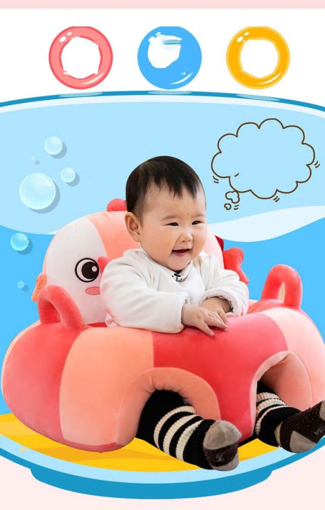 | 柔らかクッションで赤ちゃんのお座り練習にぴったりなベビーチェア 360度しっかり支える&クッション素材で安心・快適! 底面は滑り止め加工です。 揺らしても倒れにくい、安定感抜群! ママが一息したい時、散髪の時や離乳食の時にとっても便利なベビーソファです。 もちろん汚れてしまってもカバーを外して洗えるので、毎日どんどんつかっても大丈夫! | |