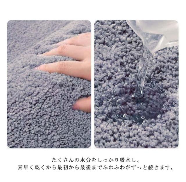 | ふわっふわ 吸水バスマット 50*80cm 速乾性 たくさんの水分をしっかり吸水し、素早く乾くから最初から最後までふわふわがずっと続きます。 滑り止め付き 裏面には滑り止め加工がされているため、子供や大人も安心して使用できます。 毛足3.1CMが登場!しっかり厚手で底冷えを感じにくく冬でも快適。 | |