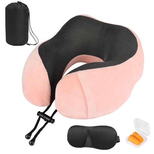 ネックピロー 首枕 低反発 旅行 携帯枕、M型 コンパクト 首まくら カバー洗濯可 持ち運び便利 飛行機/車/バス/新幹線/ソファ/椅子に適用 (ピンク)