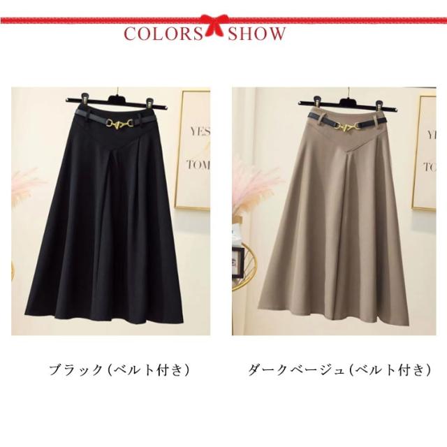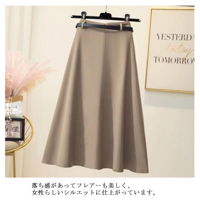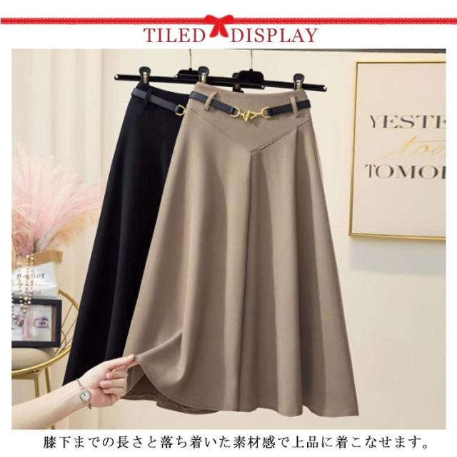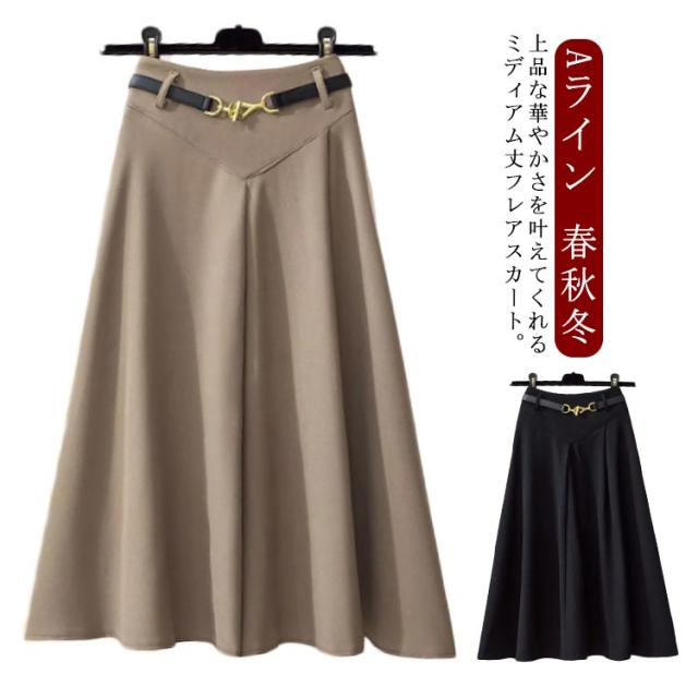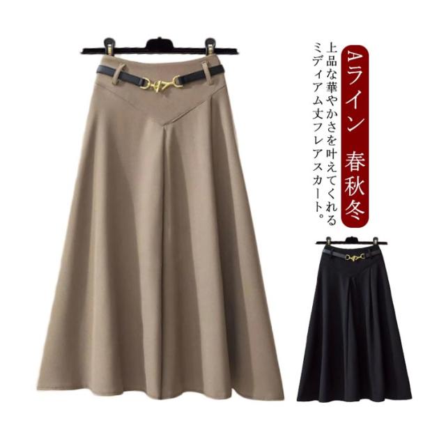 膝丈スカート レディース 春秋冬 フレア スカート ベルト付き ミドル Aライン スカート ゆったり ハイウエスト れいめ 無地 フェミニン フォーマル シンプル 大きいサイズ ロングスカート 無地 カジュアル おしゃれ 着痩せ 美脚 通勤 30代 40代 50代