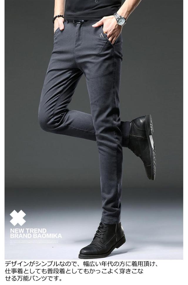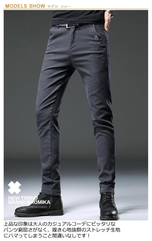 | 上品な印象は大人のカジュアルコーデにピッタリなパンツ 窮屈さがなく、履き心地抜群のストレッチ生地にハマってしまうこと間違いなしです! 穿きやすいのにスッキリとした細身のシルエットで着用することができました。 デザインがシンプルなので、幅広い年代の方に着用頂け、仕事着としても普段着としてもかっこよく穿きこなせる万能パンツです | |