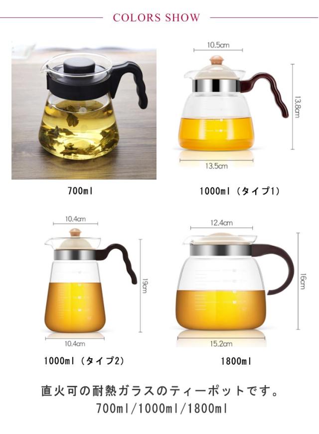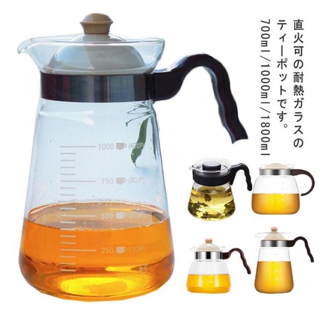 ティーポット 耐熱ガラス 1800ml 直火 ガラスポット1000ml ハンドル おしゃれ 急須 お茶 紅茶 花茶 ジャンピング 紅茶ポット 工芸茶 ハーフティー ガラス急須 茶こし一体型蓋 直火可 ガラスティーポット 食洗機対応 フルーツティー