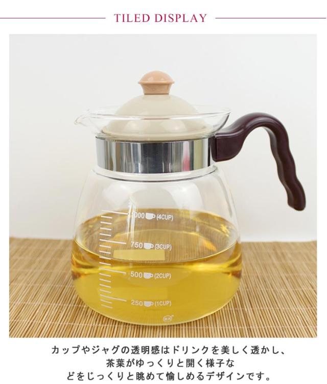 | 直火可の耐熱ガラスのティーポットです。700ml/1000ml/1800ml カップやジャグの透明感はドリンクを美しく透かし、茶葉がゆっくりと開く様子などをじっくりと眺めて愉しめるデザインです。 ゆったりとしたハンドルは握りやすく安定感のある使い心地、蓋とストレーナーが一体となっておりパーツが少なくお手入れも簡単、毎日の生活に使いやすく考えられたティーポットです。 全てのパーツがシンプルなデザインなのでお手入れも簡単で、毎日の生活の中でカジュアルに使用できます。 | |