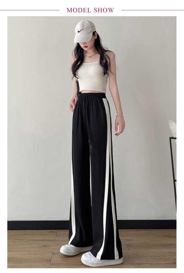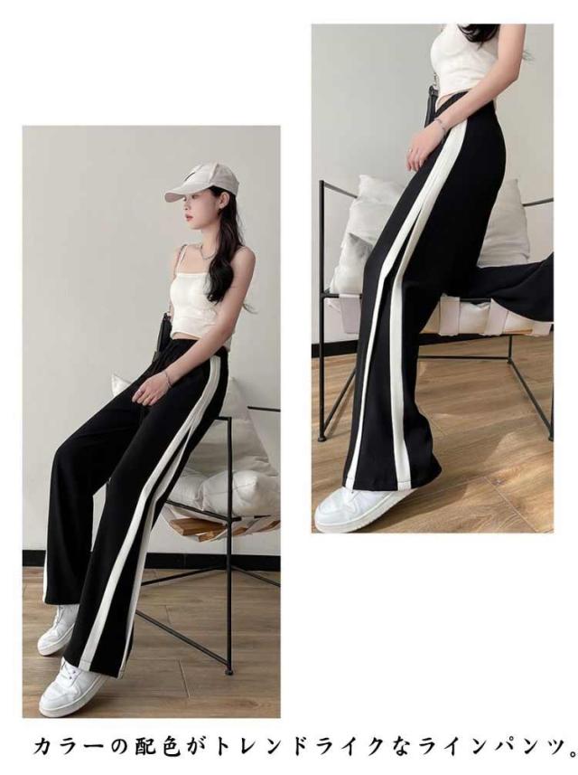 イージーパンツ レディース ジャージーパンツ ライン入り ワイドパンツ サイドラインパンツ ストレート ボトムス ロングパンツ 通気性 接触冷感 さらさら 涼しい 薄手 涼感 COOL 楽ちん ウエストゴム 部屋着 楽ち カジュアル 無地 夏 夏用